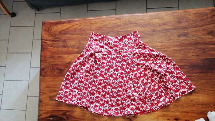 Jupe rouge et à fleurs blanches, fermeture avec une tirette - photo numéro 1