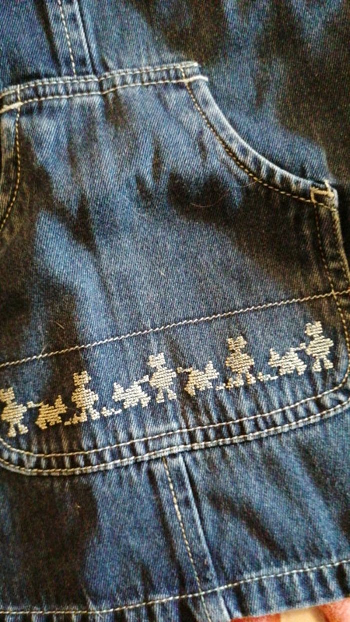 Robe en jeans. Broderies sur le poche ventrale. Zip sur le côté. Taille 4/6 mois, 68 cm Consultez mes autres articles en 6 mois #aurelieetfred6mois