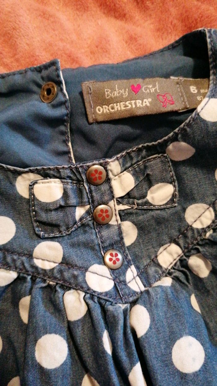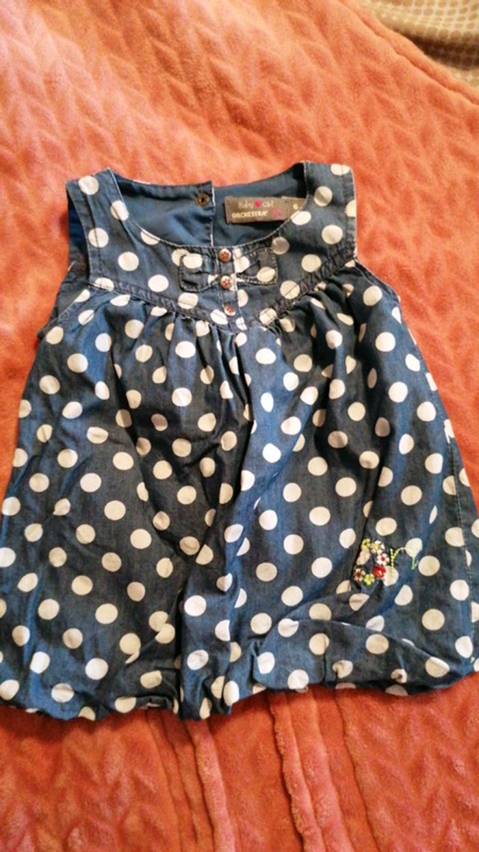 Robe bleu marine à pois de chez Orchestra. Taille 6 mois, 67 cm Bas collant Orchestra pointure 15/16 Consultez mes autres articles en 6 mois #aurelieetfred6mois