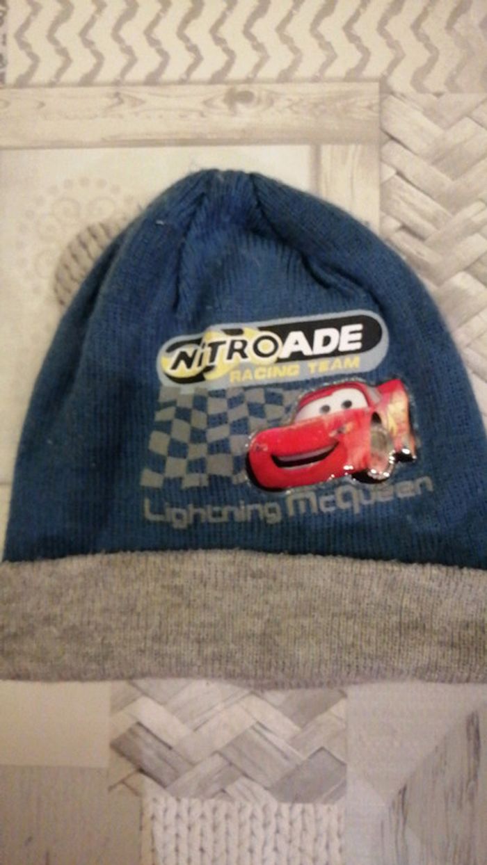 Bonnet gris clair et bleu. Taille unique