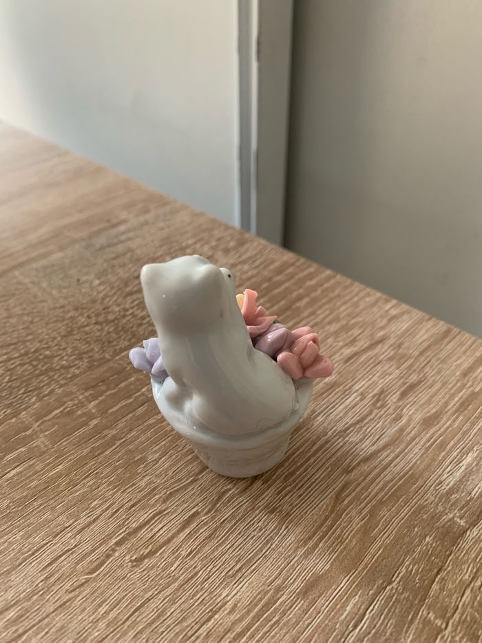 Une feuille est cassée ( voir photo) Manque de la couleur aux niveaux des yeux Mesure environ 6 cm Envoi rapide et soigné sous protection