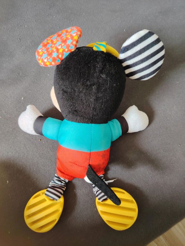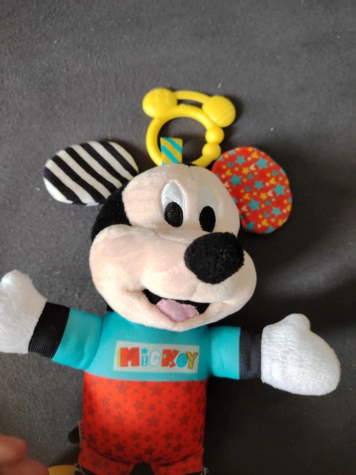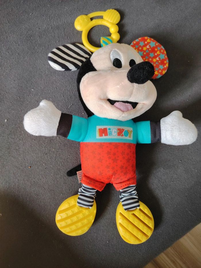Peluche mickey premières activites très peu utilisé. Peluche avec des couleurs vives et des matériaux variés pour stimuler l'enfant.