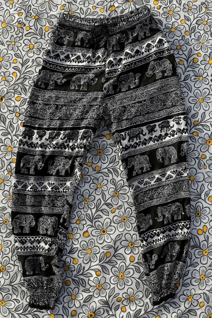 🌞 Pantalon d’étĂ© fluide motif Ă©lĂ©phant – Taille unique - photo numĂ©ro 1
