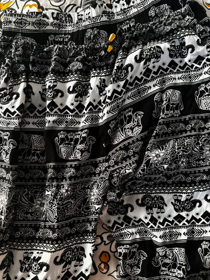 🌞 **Pantalon d’étĂ© fluide motif Ă©lĂ©phant – Taille unique** đŸ–€Noir đŸ€Blanc ✹ **Description :** ✔ Couleur : Noir & Blanc ✔ Motif : ÉlĂ©gants Ă©lĂ©phants et dĂ©tails floraux ✔ Coupe : Fluide et lĂ©gĂšre, parfaite pour l’étĂ© ✔ Taille : Unique avec Ă©lastique et cordon de serrage 💃 IdĂ©al pour un look bohĂšme et confortable, ce pantalon s’adapte Ă  toutes les morphologies. Son tissu respirant est parfait pour les journĂ©es chaudes ! 📩 **Envoi rapide et soignĂ©** ✹ N’hĂ©site pas Ă  me contacter pour plus d’infos ! 😊