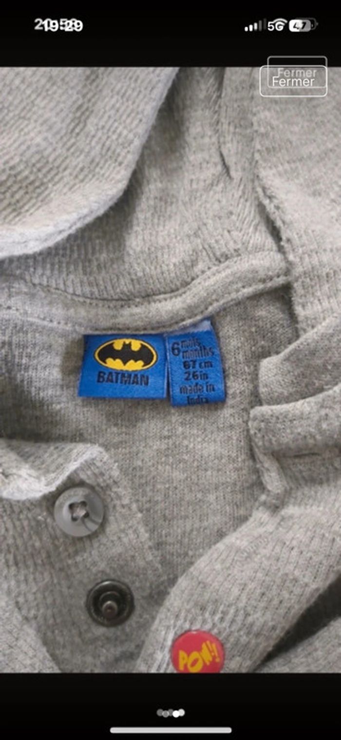 **Pour les petits super-héros en herbe ! 🦸‍♂️🦸‍♀️** Offrez à votre bébé de 6 mois le style et le confort d'un véritable super-héros avec ce superbe pull Batman ! 🔹 **Design iconique** : arborant fièrement le célèbre logo jaune et noir de Batman, il transforme chaque sortie en une mission héroïque. 🔹 **Douceur et chaleur** : conçu en tissu ultra confortable, il garde votre petit au chaud tout en étant agréable à porter. 🔹 **Praticité** : boutons sur le devant pour un habillage facile et une capuche pour un look encore plus cool. Parfait pour les aventures du quotidien ou comme cadeau unique pour un futur défenseur de Gotham ! 🌟 Ne laissez pas ce vêtement épique vous échapper ! Qui veut équiper son petit héros ? 🦇💛