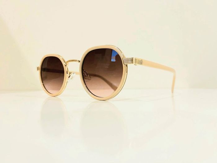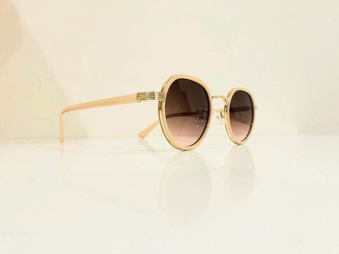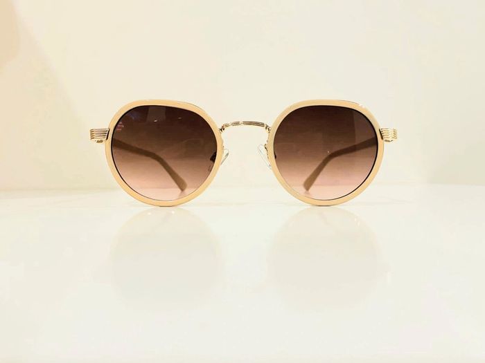 Lunette de soleil mixte beige et dorée verres marron dégradés uvprotection taille small - photo numéro 1
