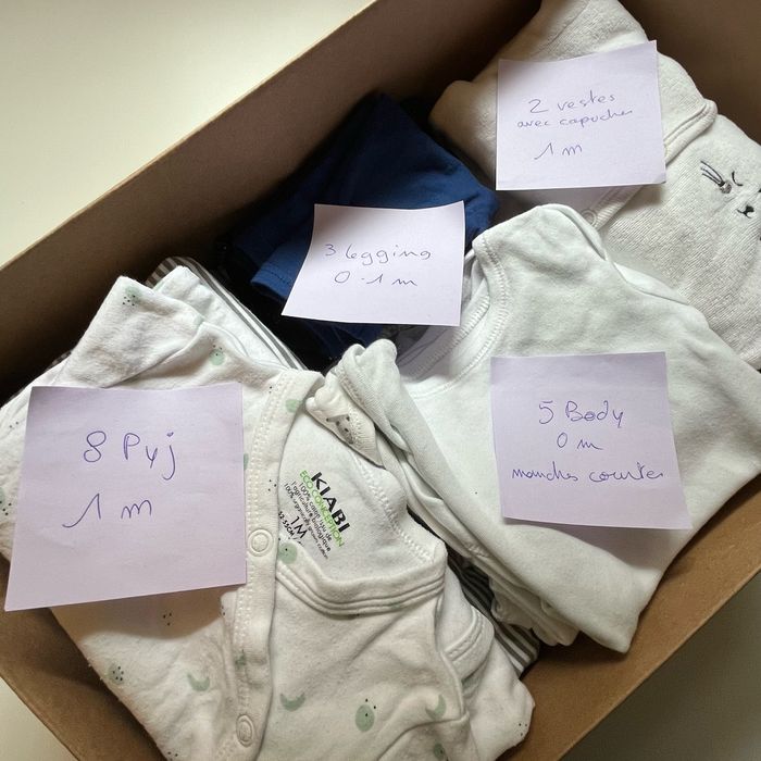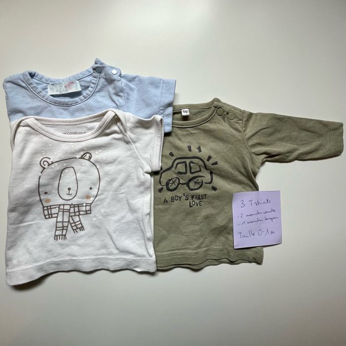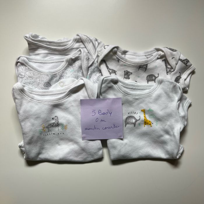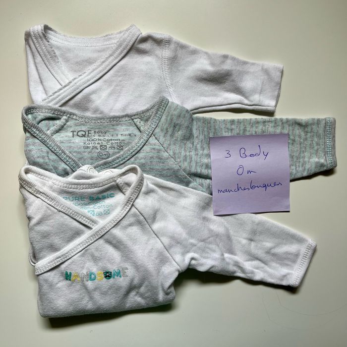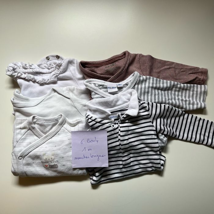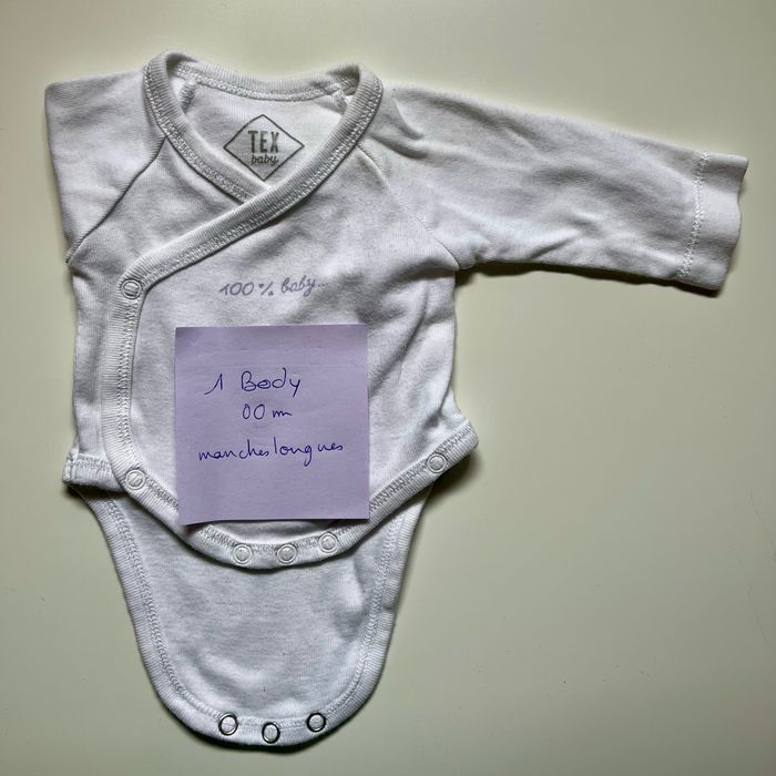 Composition du lot : 🐣 Taille 00 mois : - 1 body manches longues 🐥 Taille 0 mois : - 3 Body manches longues - 5 Body manches courtes 👶 Taille 1 mois : - 6 body manches longues - 2 body manches courtes - 2 vestes avec capuches - 8 pyjama 👶 Taille 0-1 mois : - 2 tshirts manches courtes - 1 tshirt manches longues - 3 legging ✨ 30 vetements Bébé ✨ 💬 N'hésitez pas à me contacter si vous voulez plus de photos ou de précision sur le lot