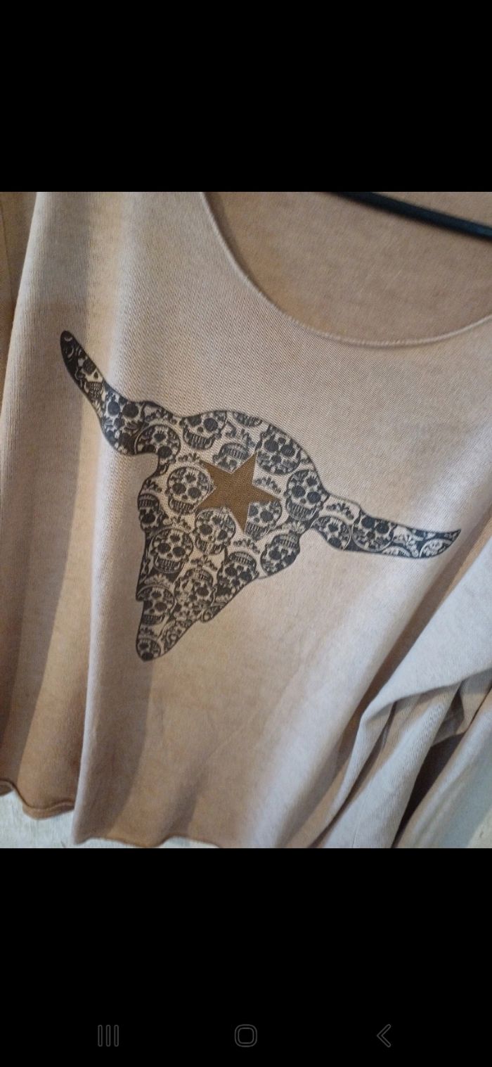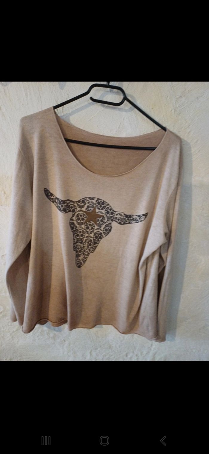 Pull léger, fin, fluide et très confortable. Motif à l avant. Comme neuf
