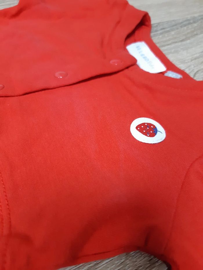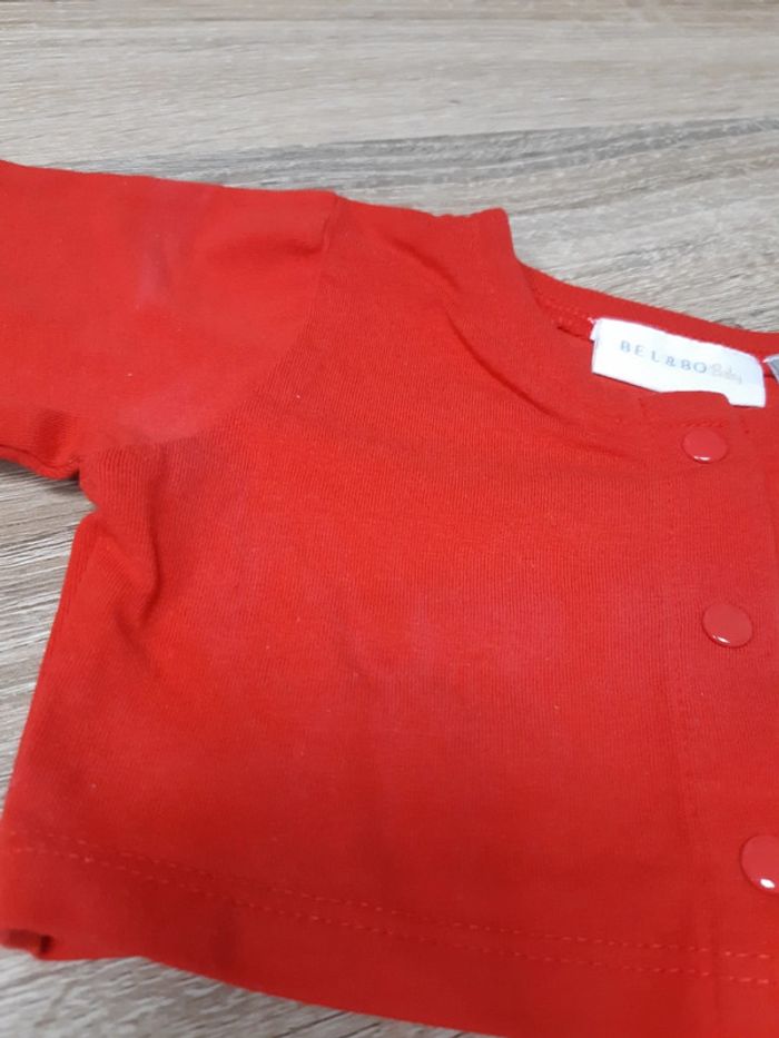 Ensemble gilet court et robe Bel&Bo 62 cm + legging rouge 3 mois Robe manches courtes motif fuits rouge, cerise, fraise et coccinelle, très peu portée Gilet et legging: couleur passé par endroit voir photo #anthonyagnes_bebe3M