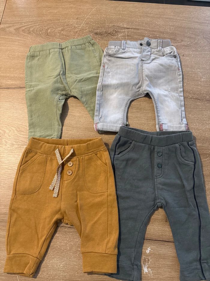 Lot de 10 pièces comprenant 2 pulls (1 chaud Kiabi et 1 vert plus léger zeeman ) 1 tee shirt manche longue tape à l œil 7 pantalons de différentes marques Le tout en très bon état (Possible à l unité me demander) Porté que par 1 seul enfant
