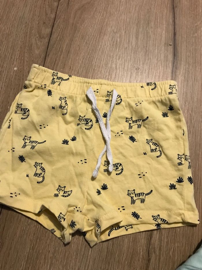 Lot de 3 shorts 12 mois Kiabi Peu porté Parfait état Un jaune avec motif chat, un menthe et un marine