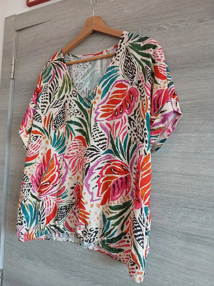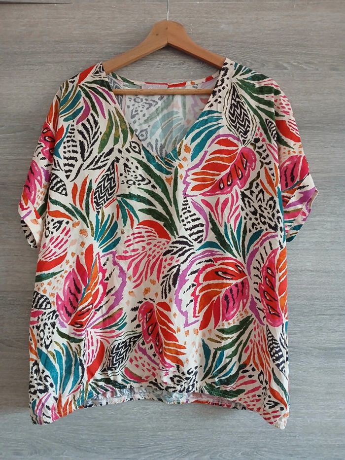 Blouse imprimé multicolore Taille XXL 100% viscose Made in France