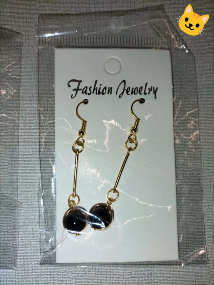 Boucles d'oreilles pendantes perles noires