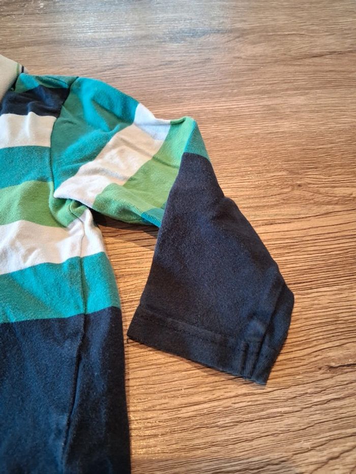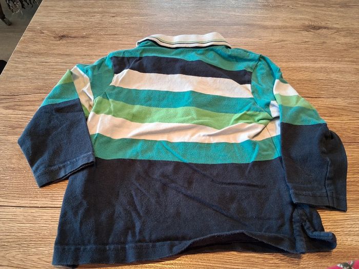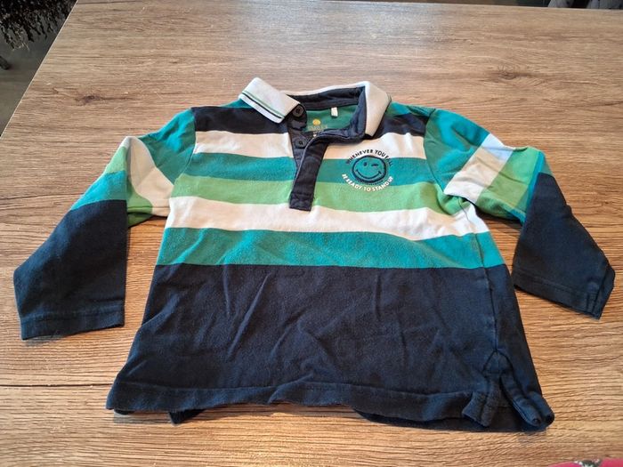 Bonjour, je vends ce polo à manches longues rayé blanc bleu et vert de la marque Smiley World taille 2ans en très bon état.