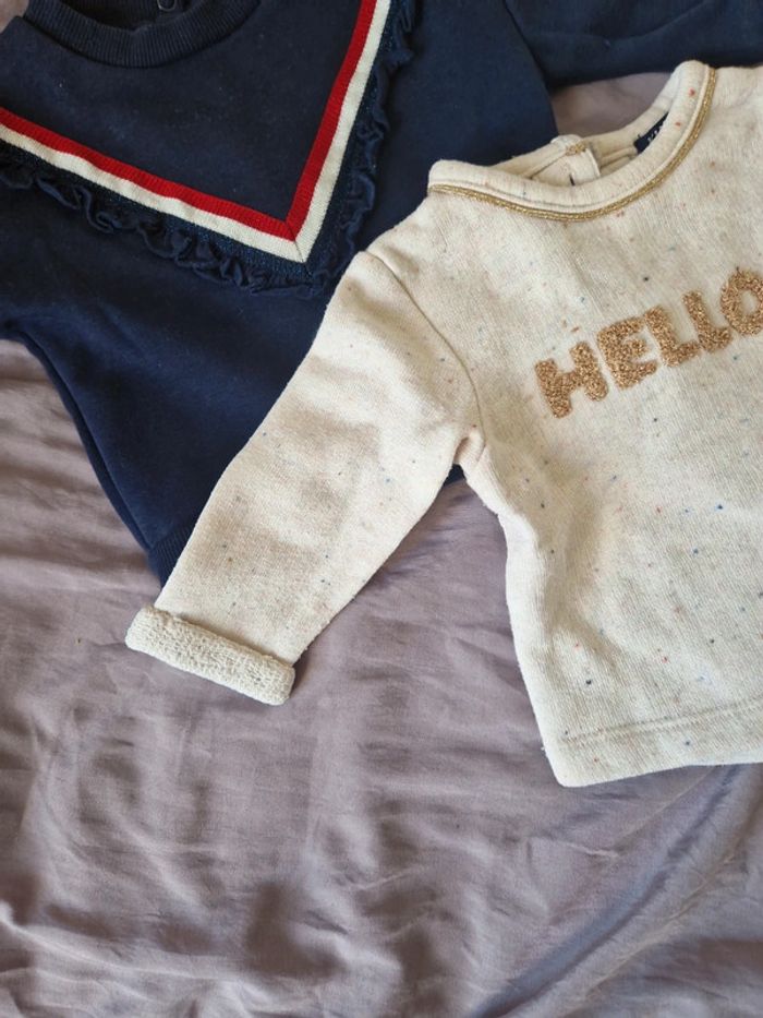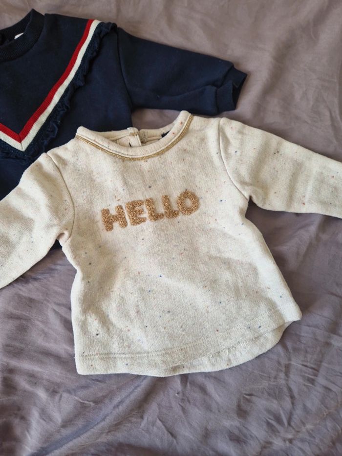 Lot de 2 pulls 1 beige kiabi 1 bleu marine gemo très peu porté En super état Taille 3 mois