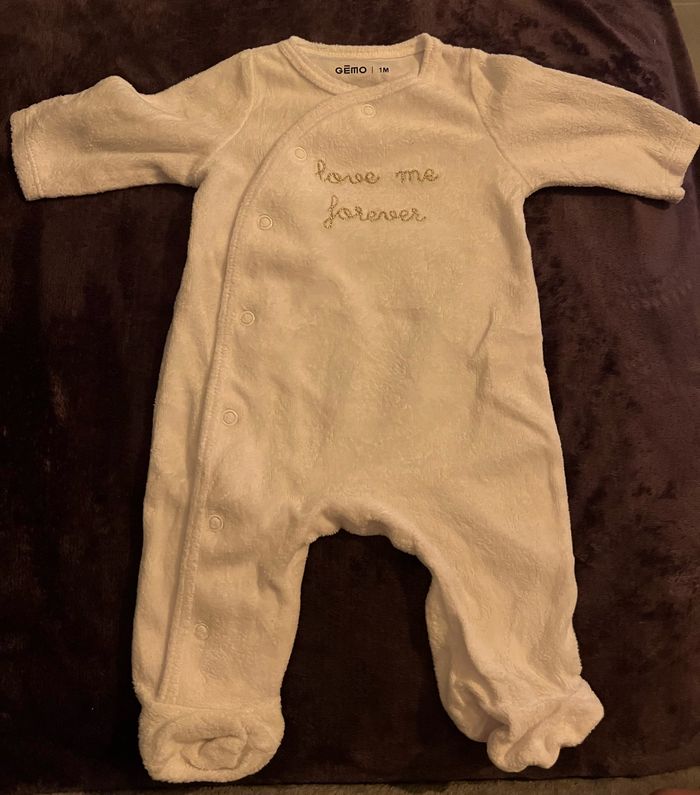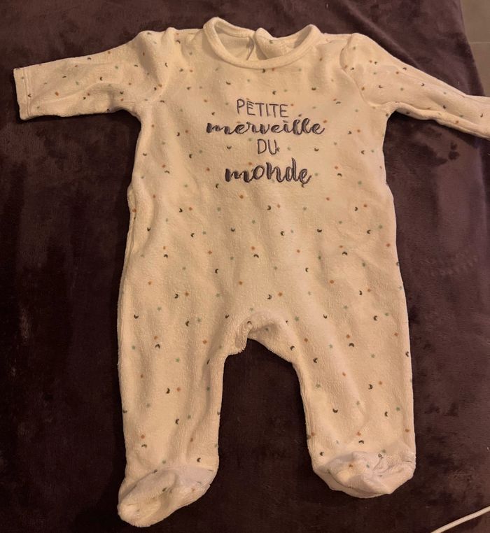 Lot de 7 pyjamas velours taille un mois en très bon état lavage soigné sans tache fermeture avant et arrière selon les modèles (photos du site pour voir les fermetures et mieux visualiser la couleur car ressort mal en photo)