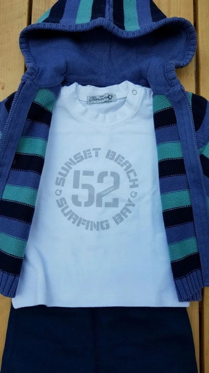 Ensemble tee-shirt + short + gilet - T. 6 mois - photo numéro 3