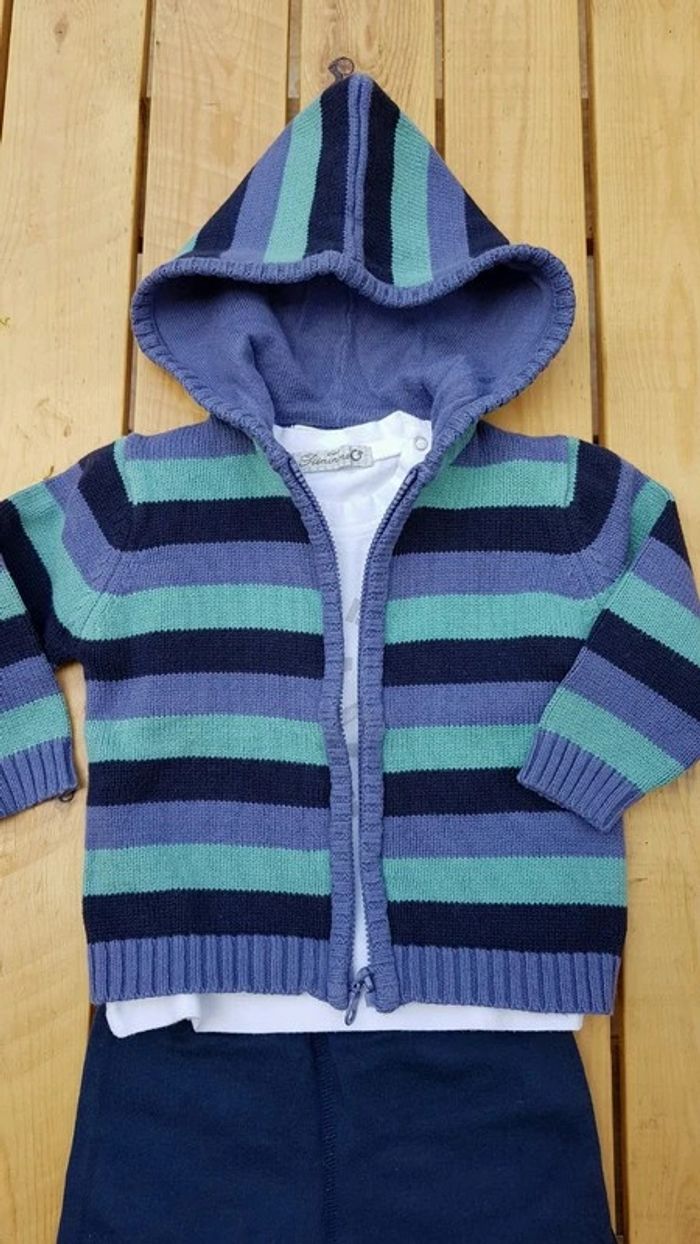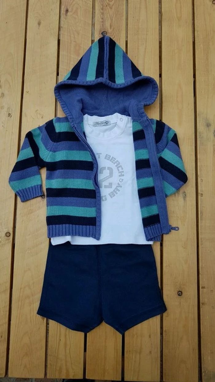 Ensemble tee-shirt blanc + short bleu marine (Petit bateau) + gilet (cocoon) - T. 6 mois - TRÈS BON ÉTAT. #alupineteeshirtgarcontaille6mois #alupinepantalonshortgarcon6mois #alupinegiletgarcontaille6mois #ensembleteeshirtshortgarcon6mois #teeshirtmanchescourtesgarcon6mois #shortgarcon6mois #petitbateaugarcon6mois #giletzippegarcon6mois #petitbateau #cocoon