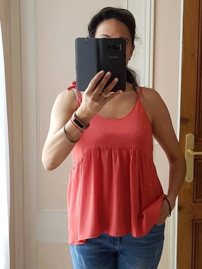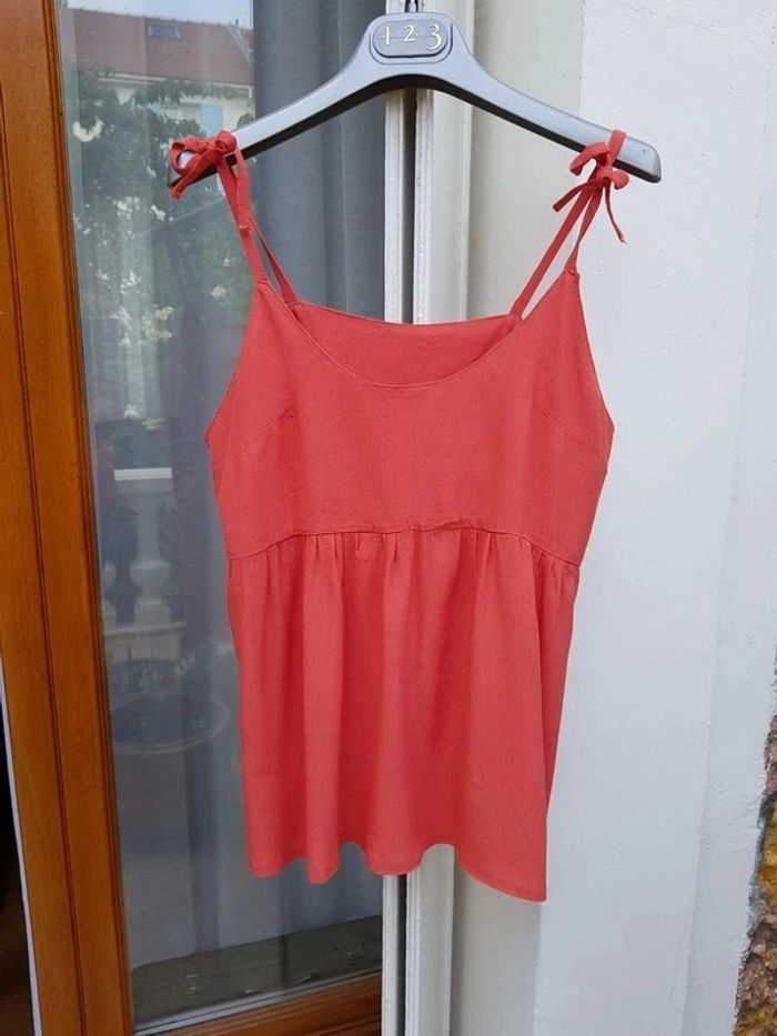 Débardeur couleur corail = pamplemousse (bretelles réglables par laçage) - T. 40 - TRÈS BON ÉTAT. #alupinehautfemmetaille40 #debardeurfemme40 #debardeurbretellesreglables40 #hautfemme40