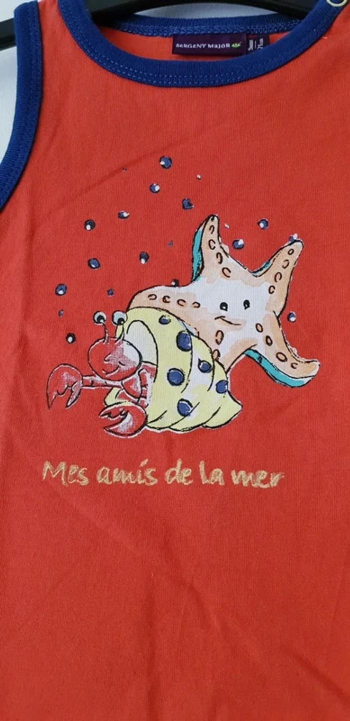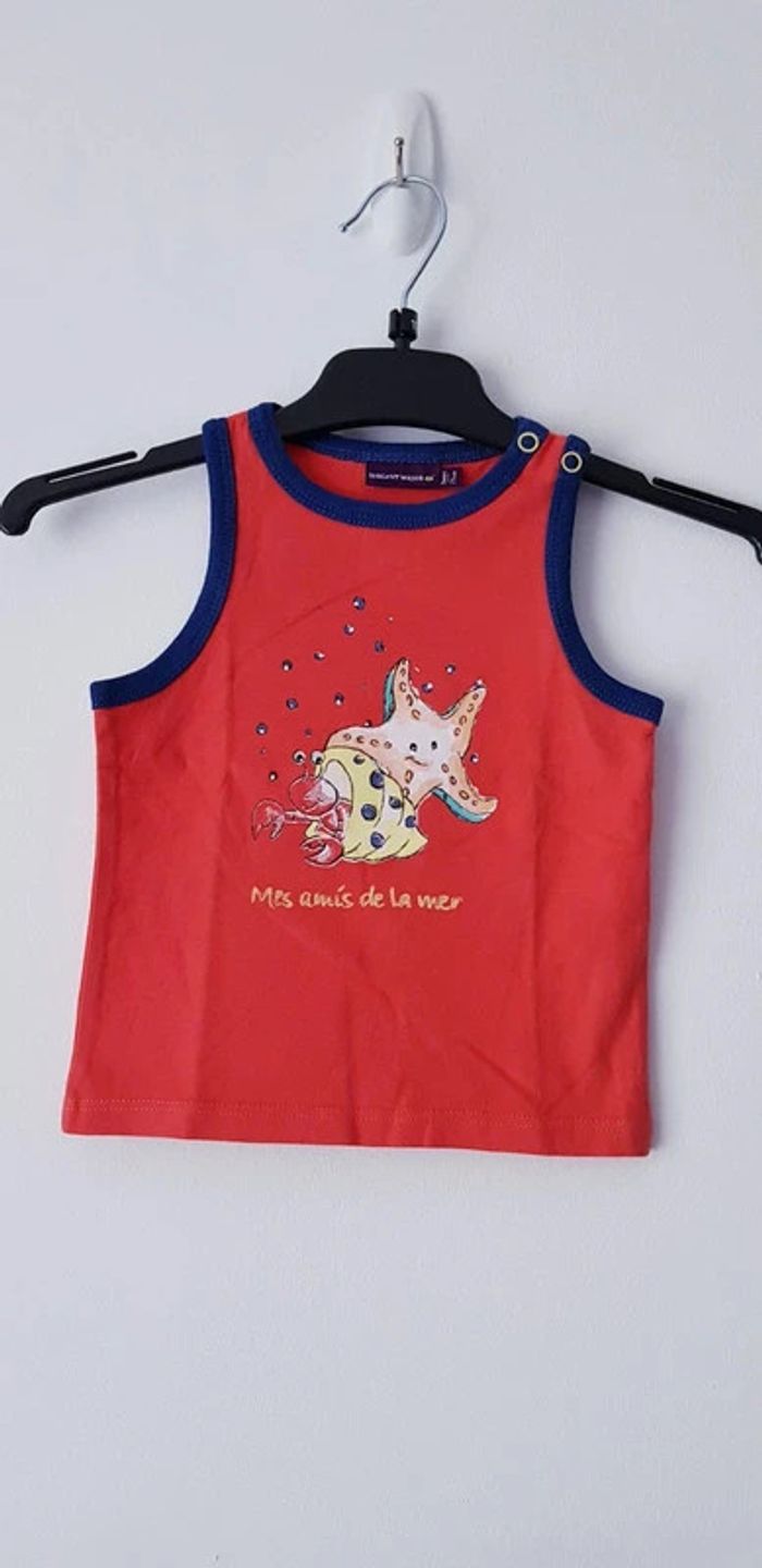 Débardeur rouge, flocage coquillage en très bon état - T. 9 mois - TRÈS BON ÉTAT. #alupineteeshirtgarcontaille9mois #débardeurgarcon9mois #debardeursergentmajorgarcon9mois #teeshirtsergentmajorgarcon9mois #teeshirtgarcon9mois #sergentmajorgarcon9mois #sergentmajor
