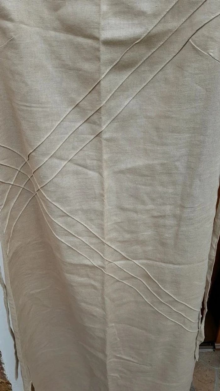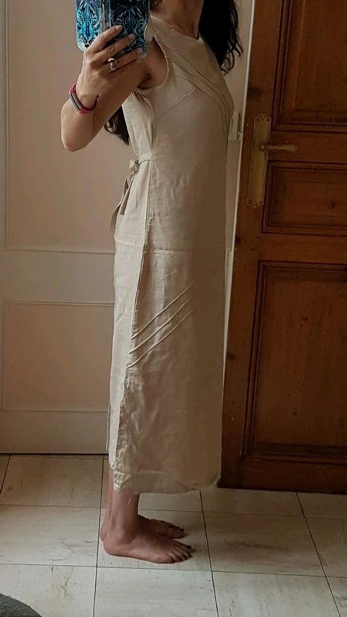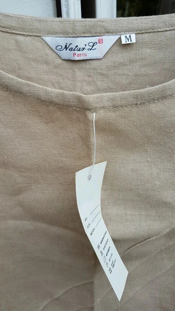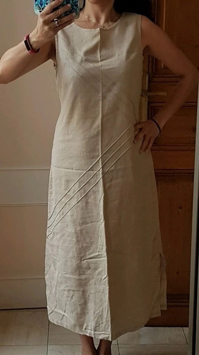 Robe légère beige 75% lin et 25% coton. Taille réglable avec 2 lanières sur les côtés, fendue en bas des 2 côtés. Dimensions : env. 46 cm d'aisselle à aisselle et env. 120 cm de long - Indiqué sur étiquette T. M mais convient plus à un 40/42 - NEUVE #alupinerobejupefemmetaille40 #robeetefemme4042 #robefemme4042 #robelinfemme4042 #robemilonguefemme40 #robesansmanchesfemme40 #robefemme40 #robeetefemme40 #robenaturlfemme40 #naturlfemme40 #naturl