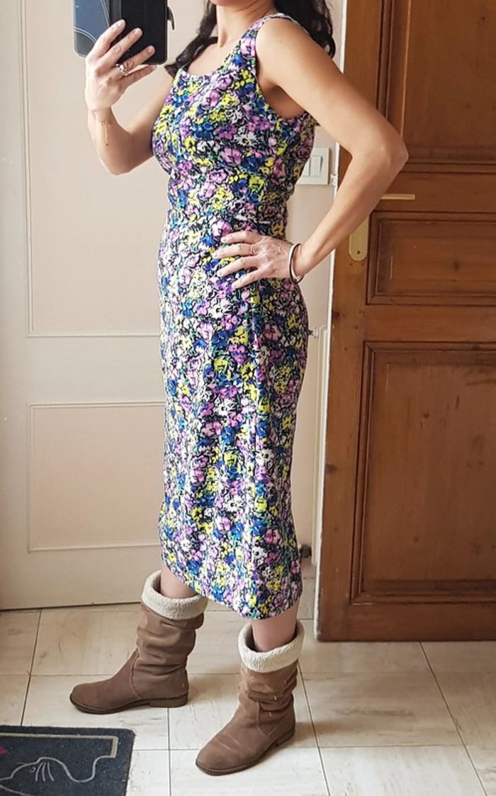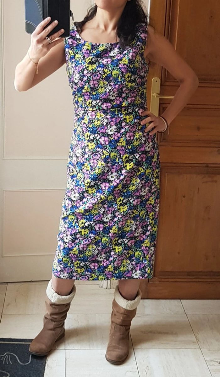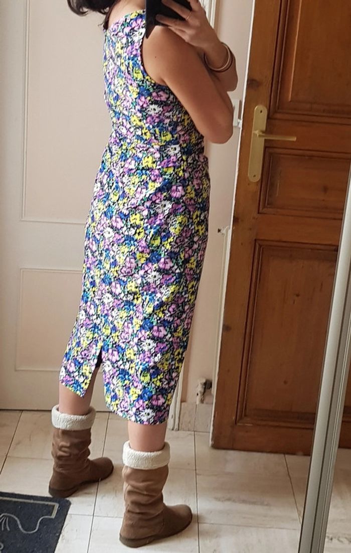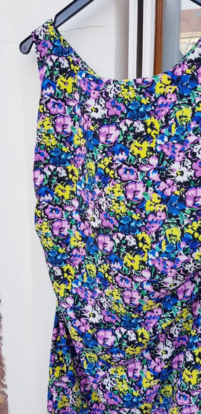 Robe légère et fluide aux motifs floraux multicolores, fermeture zippée dans le dos légèrement froncés - T. 40 - Robe qui a subi des "maltraitances" 😅 elle a été reprise à plusieurs endroit mais qui n'est très flagrant vu qu'elles se perdent dans les motifs (voir les photos) si besoin revenez vers moi...sinon dans l'ensemble la robe est en TRÈS BON ÉTAT. #alupinerobejupefemmetaille40 #robefemme40 #robesansmanchesfemme40 #robelegerefemme40 #robezarafemme40 #robelegerezarafemme40 #robesansmancheszarafemme40 #zarafemme40 #zara