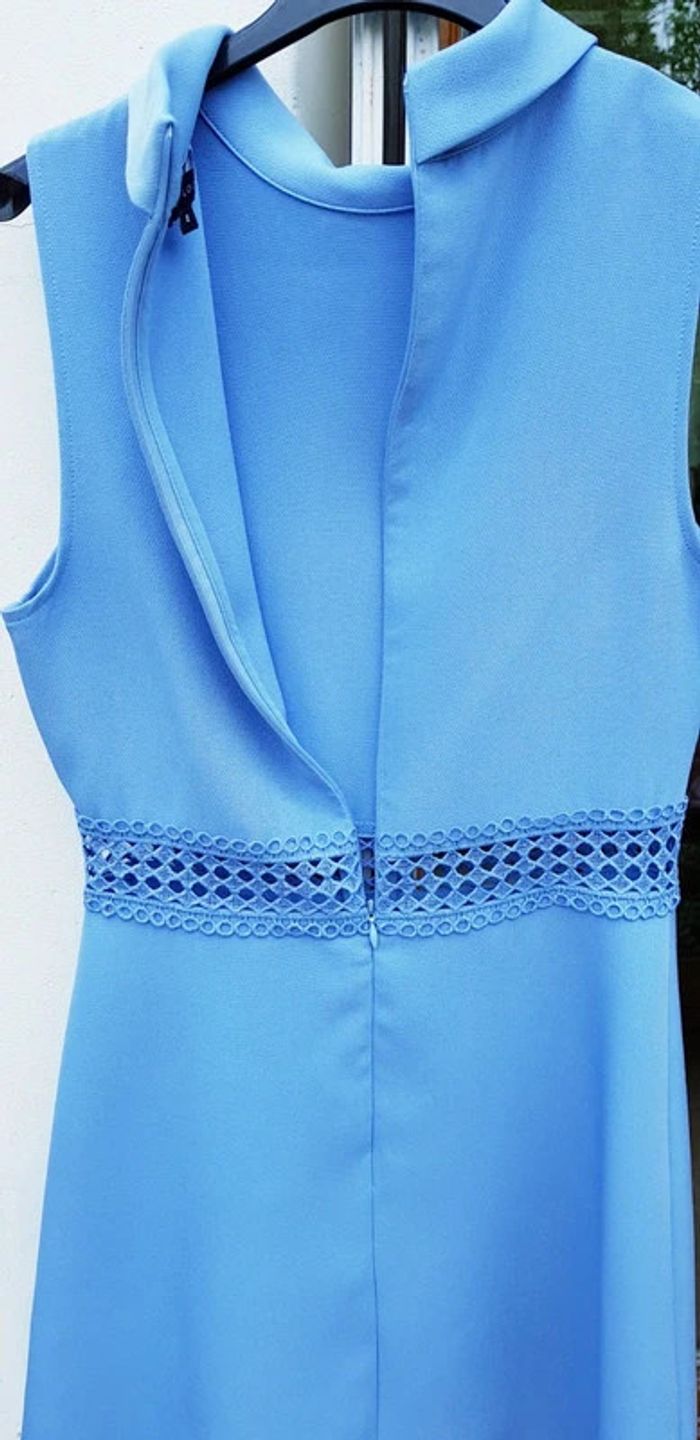 Robe sans manches bleu-gris (se fier à la 1ère photo pour la couleur) avec col, bande ajourée en crochet à la taille, ouverture zippée dans le dos - T. 36 - TRÈS BON ÉTAT COMME NEUVE. #alupinerobejupefemmetaille36 #robefemme36 #robechicfemme36 #robehabilleefemme36 #robesansmanchesfemme36 #robeetefemme36 #robepouroccasionfemme36 #robesansmanchesnewlookfemme36 #newlookfemme36 #newlook
