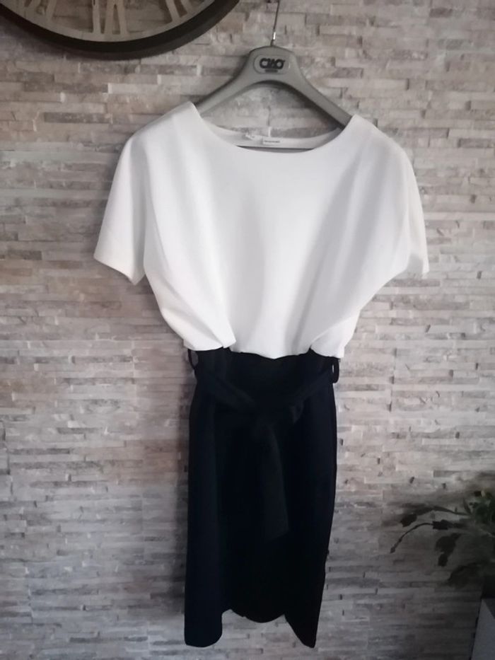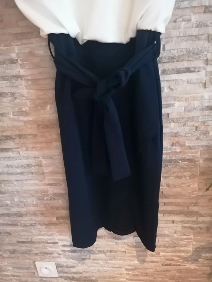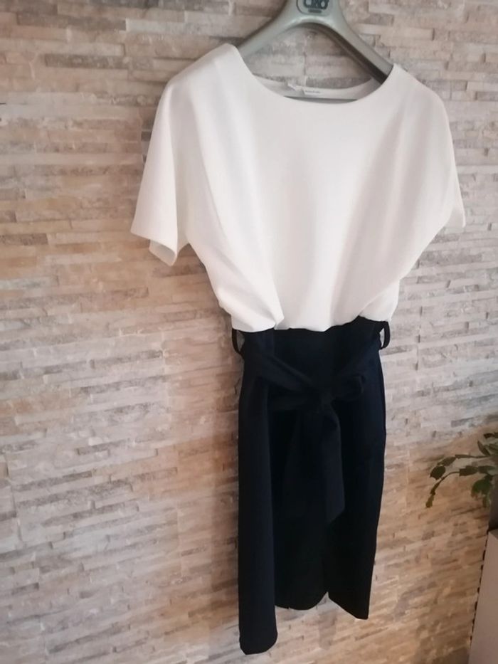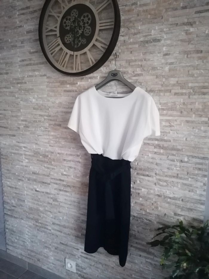 Robe femme Neuve sans étiquette Bicolore Haut blanc Jupe bleu marine avec ceinture tissu pour faire un nœud. Légèrement fendue Taille 38-40 Cf photos pour vous rendre compte de l'état neuf sans étiquette #Vêtements_femmes_krocaro
