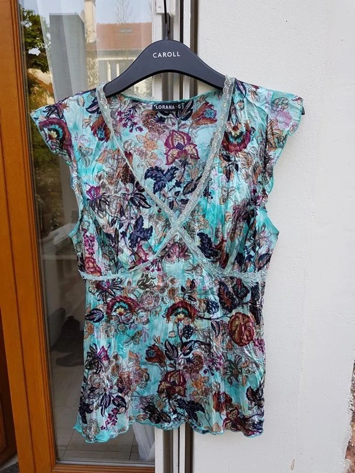 Débardeur coloré et satiné - T. 38 - TRÈS BON ÉTAT COMME NEUF #alupineteeshirtfemmetaille38 #alupinehautfemmetaille38 #debardeurfemme38 #hautfemme38 #hautmanchescourtesfemme38 #hautepaulesdenudees38 #loranag #topfemme38 #hautloranagfemme38 #toploranagfemme38