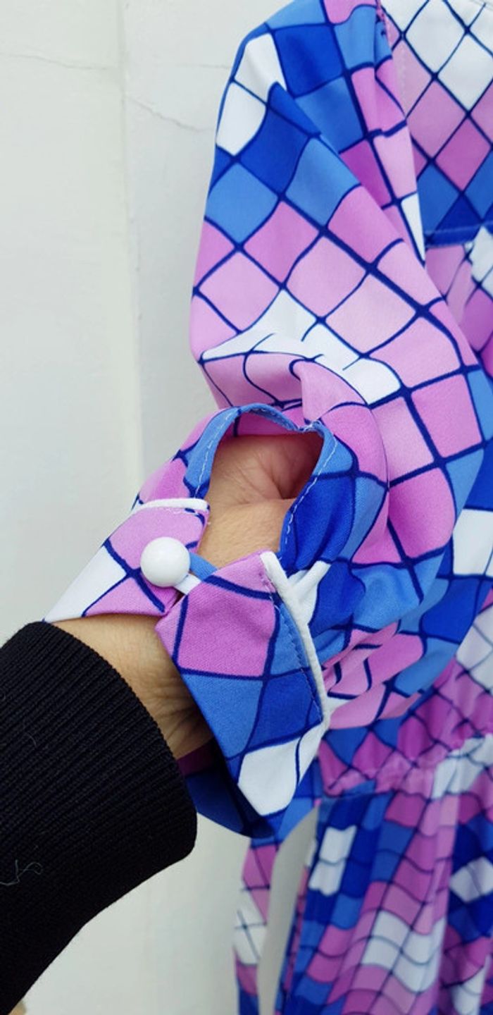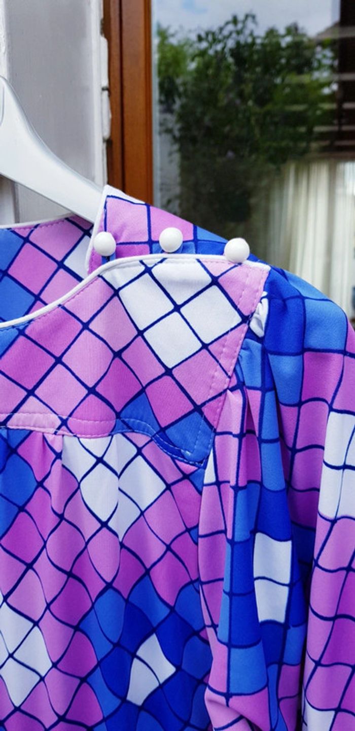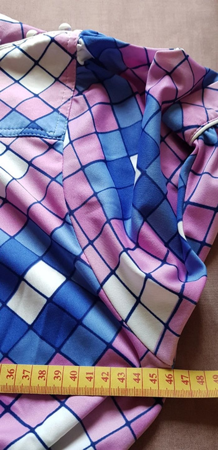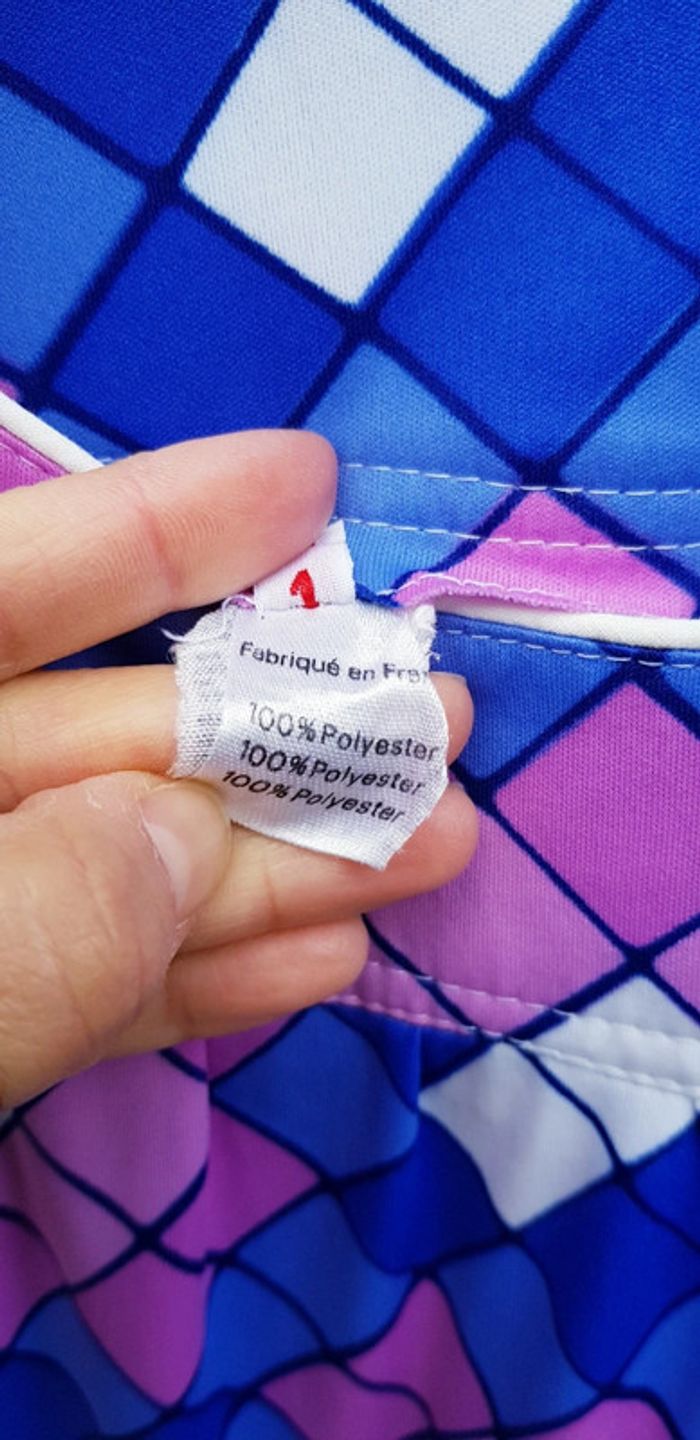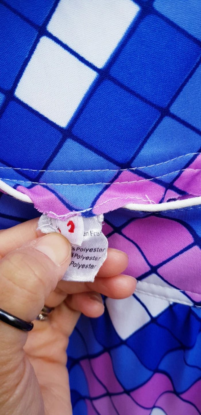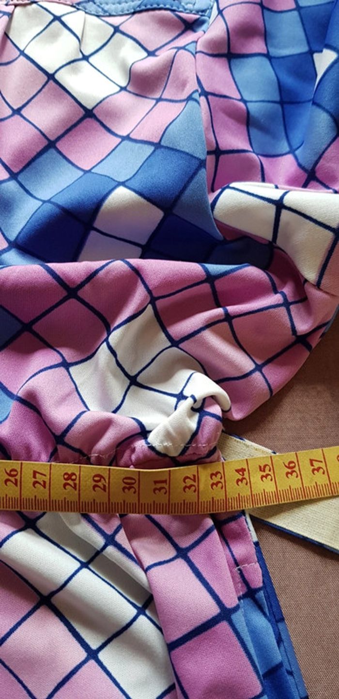 Robe vintage mi longue manches courtes avec ceinture de couleur bleu, rose, blanc...avec la taille élastiquée - T. 38 / 40 - Porté, 1 petite reprise derrière en bas de robe peu visible mais reste en TRÈS BON ÉTAT dans l'ensemble. #alupinerobejupefemmetaille38 #robefemme38 #robevintagefemme38 #robemilonguefemme3840 #vintagefemme #vintage