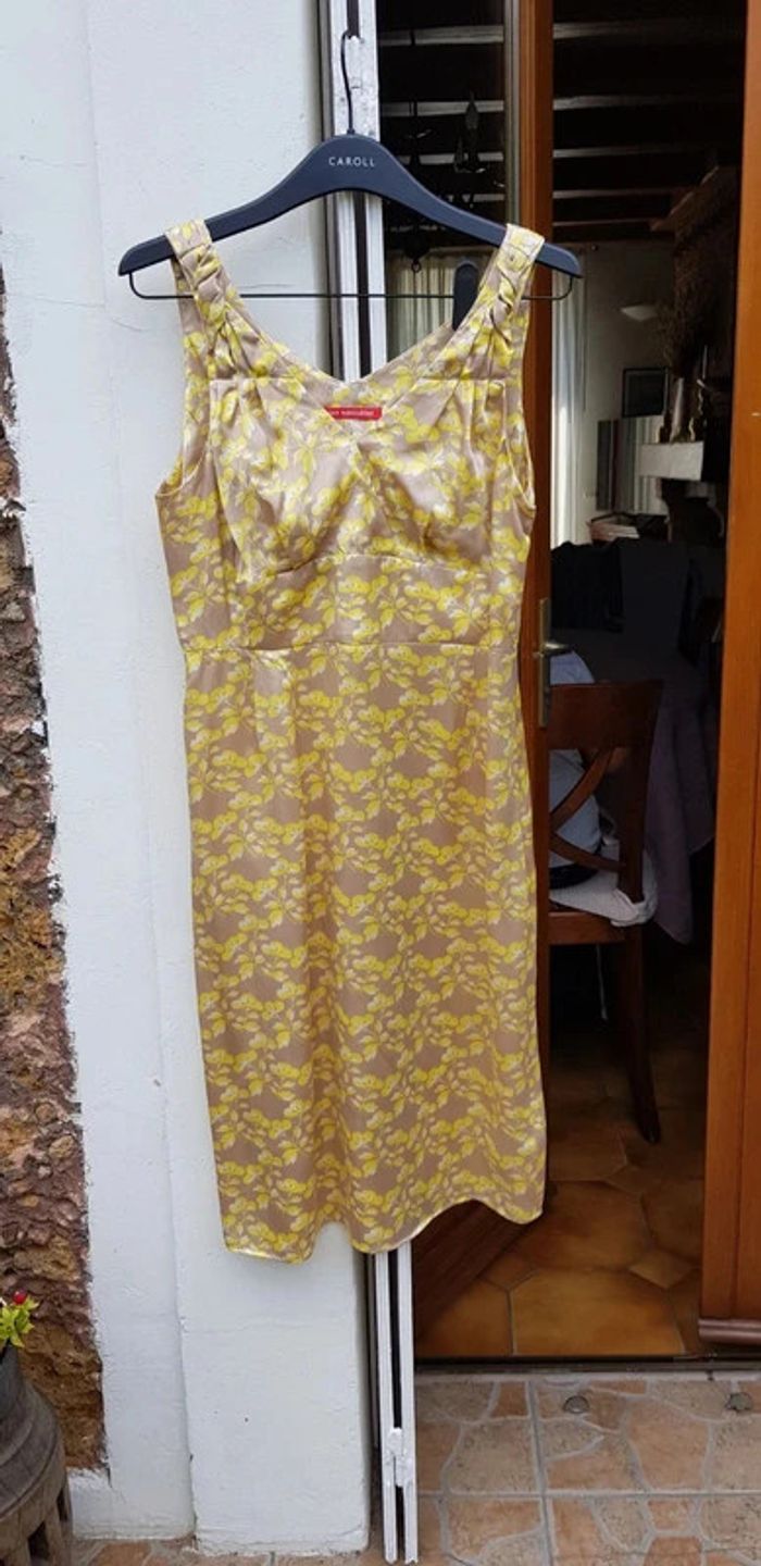 Robe très agréable en soie de couleur marron et jaune, ouverture zippée sur le côté - T. 40 indiqué T. 42 mais reste large pour cette taille, peut convenir à un 38/40 - COMME NEUVE portée 1 fois. #alupinerobejupefemmetaille40 #alupinerobejupefemmetaille38 #robefemme3840 #robefemme40 #robeetefemme40 #robebretellesfemme40 #robesansmanchesfemme40 #robesoiefemme3840 #robesoiefemme40 #robealainmanoukianfemme3840 #robealainmanoukianfemme40 #alainmanoukianfemme3840 #alainmanoukianfemme40 #alainmanoukian