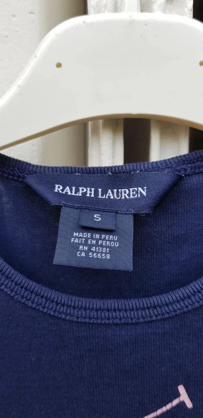 Tee-shirt manches courtes bleu marine avec flocage en très bon état - T. 5 ans - TRÈS BON ÉTAT. #alupineteeshirtfilletaille5ans #teeshirtfille5ans #teeshirtmanchescourtesfille5ans #teeshirtralphlaurenfille5ans #teeshirtmanchescourtesralphlaurenfille5ans #ralphlaurenfille5ans #ralphlauren