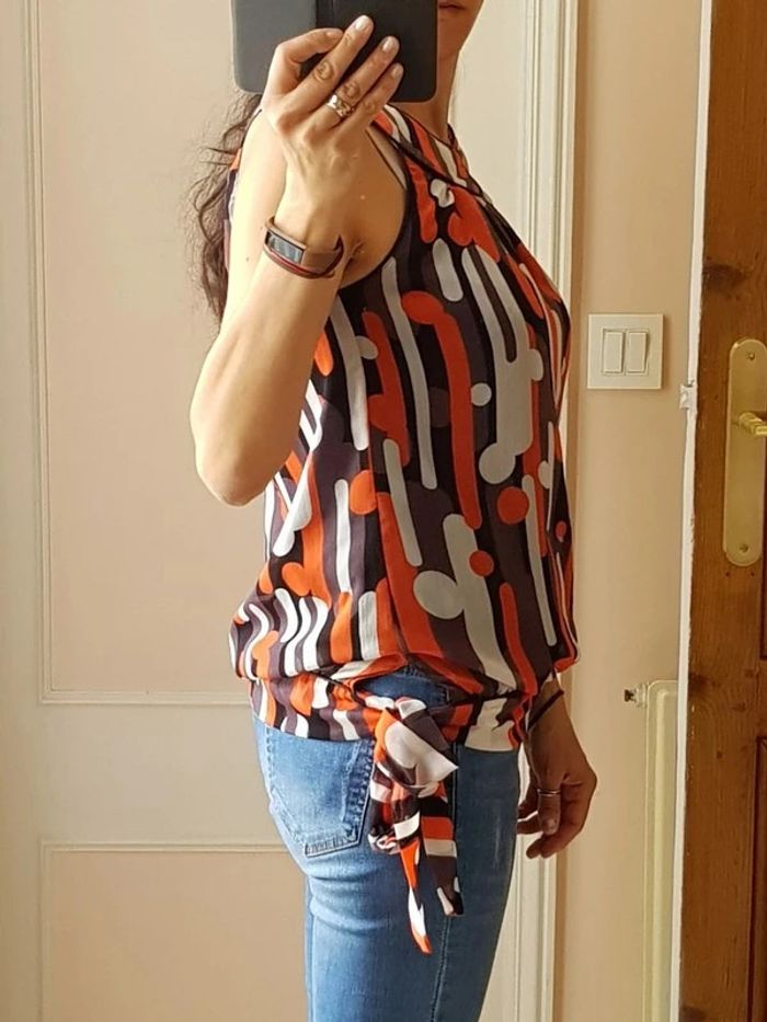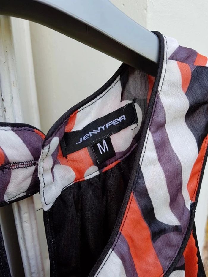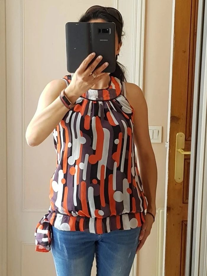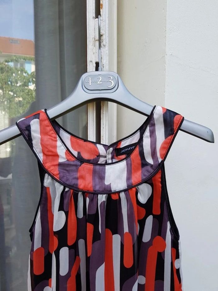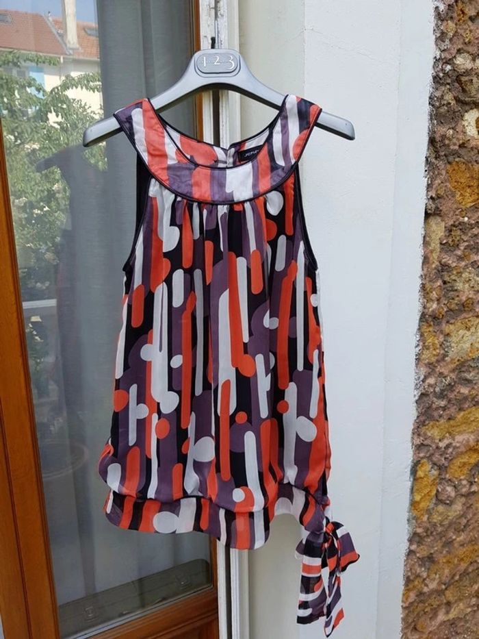 Haut coloré orange, blanc...avec taille plus serrée et bande à liée. Défaut fils tiré mais ne se voit pas vraiment voir photo - T. 38/40 - TRÈS BON ÉTAT malgré tout. #alupinehautfemmetaille38 #debardeurfemme3840 #hautfemme3840 #debardeurjennyferfemme3840 #hautsansmanchesfemme3840 #hautfemmejennyfer3840 #jennyfer3840 #debardeurfemme38 #jennyfer