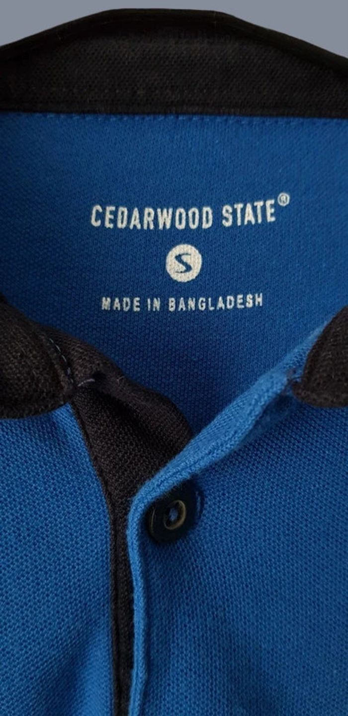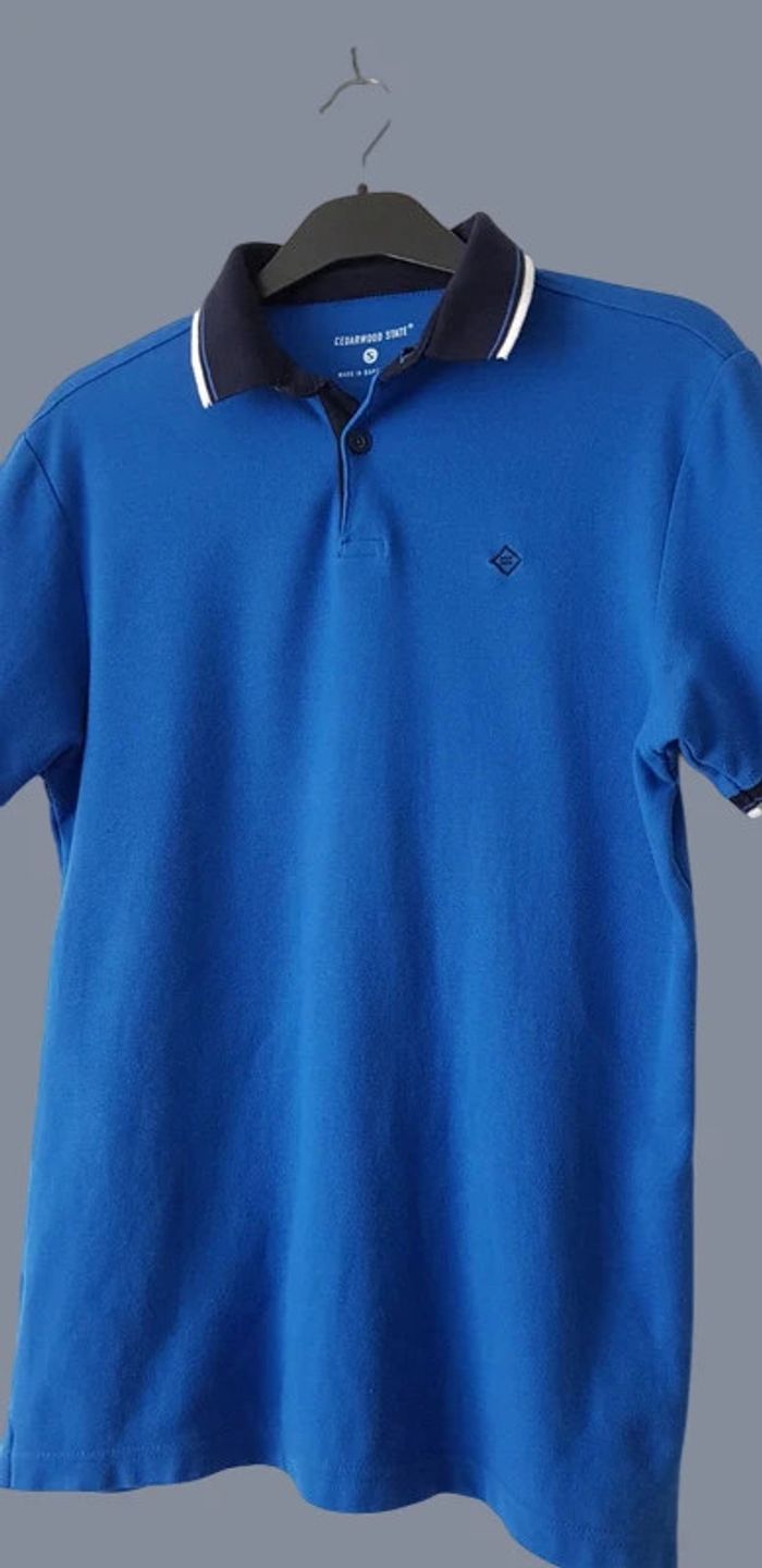 Polo manches courtes bleu et bleu marine / blanc aux manches et au col - T. S - TRÈS BON ÉTAT juste une petite reprise dans le dos bas du polo qui se voit à peine. #alupinepolohommes #polomanchescourteshommes #polomanchescourteshommetailles #polohommes #polohommetailles #polocedarwoodstatehommes #polocedarwoodstatehommetailles #cedarwoodstatehommes #cedarwoodstate