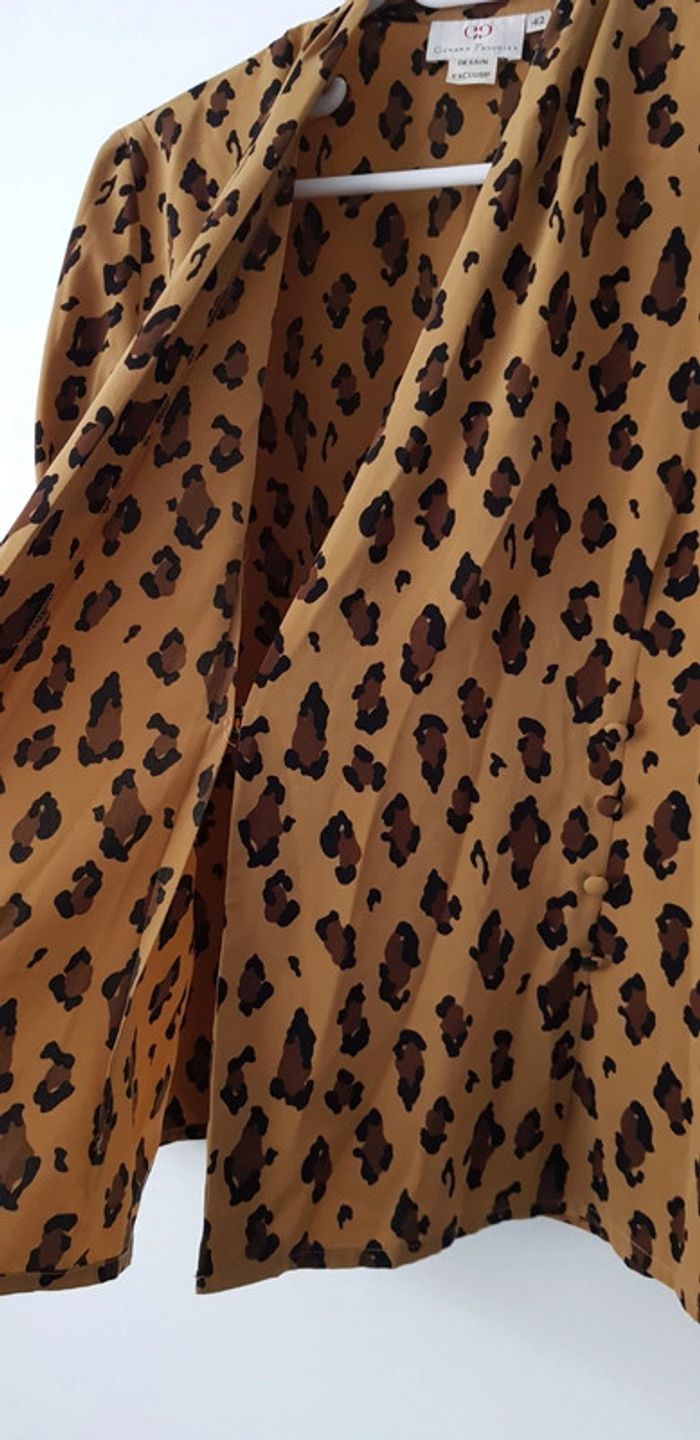 Ensemble fluide imprimé léopard composé d'un haut manches longues avec épaulettes, fermeture croisée, boutons sur les côtés et d'une jupe portefeuille avec élastique sur les côtés (possible de bouger les boutons pour ajuster la taille) (mesures voir photos) - T. 42 - TRÈS BON ÉTAT. #alupineensemblefemmetaille42 #ensemblefemme42 #ensemblehautjupefemme42 #ensembleblousejupefemme42 #ensembleimprimeleopardfemme42 #ensemblegerardpasquierfemme42 #ensemblehautjupegerardpasquierfemme42 #hautgerardpasquierfemme42 #jupegerardpasquierfemme42 #gerardpasquierfemme42 #gerardpasquier