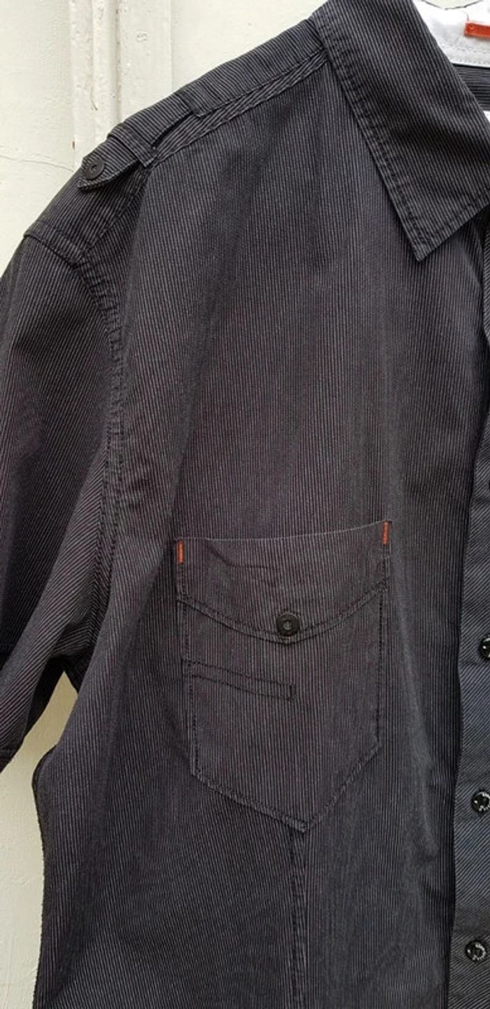 Chemise manches courtes noire à rayures blanches en coton - T. XXL - COMME NEUVE. #alupinechemisehommexxl #chemisehommexxl #chemisemanchescourteshommexxl #chemiseceliohommexxl #chemisemanchescourtesceliohommexxl #celiohommexxl #celio