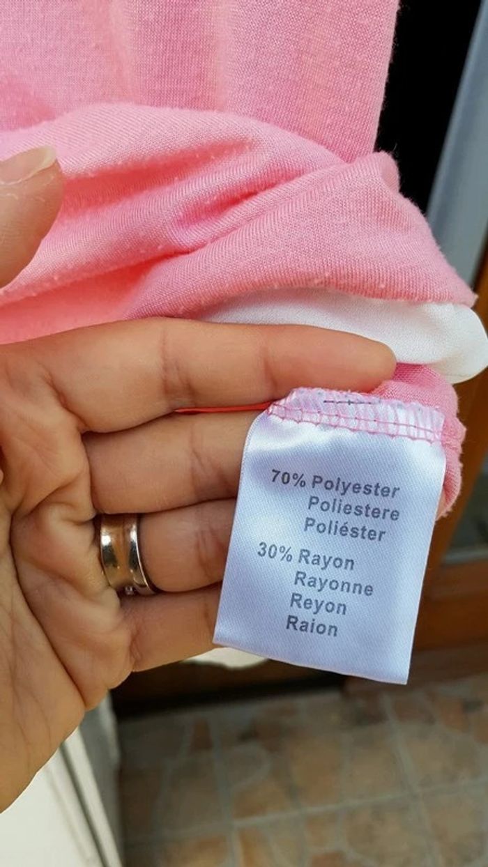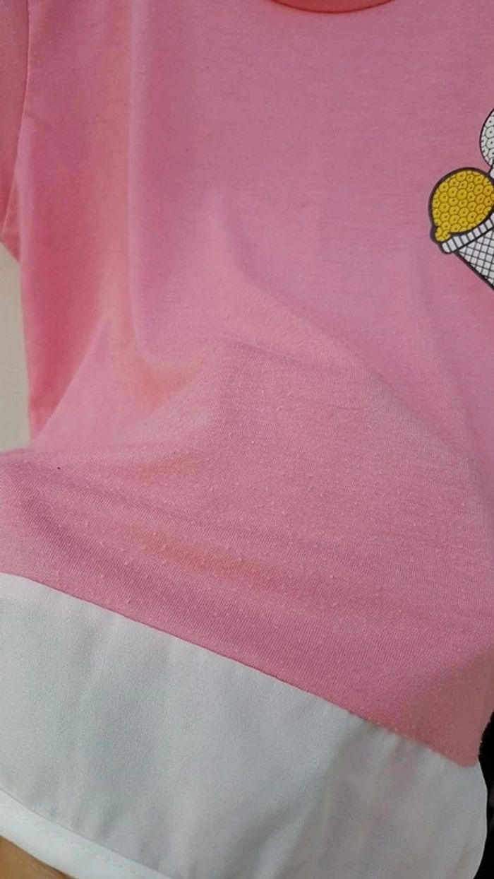 Tee shirt rose bi matière - T. 11 ans - bien porté, quelques bouloches mais reste en BON ÉTAT. #alupineteeshirtfilletaille11ans #teeshirtfille1112ans #teeshirtmanchescourtesfille11ans12ans #teeshirtmanchescourtesfille11ans