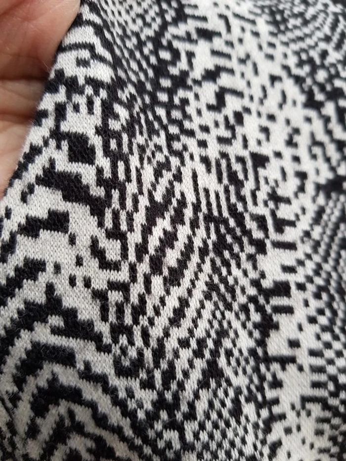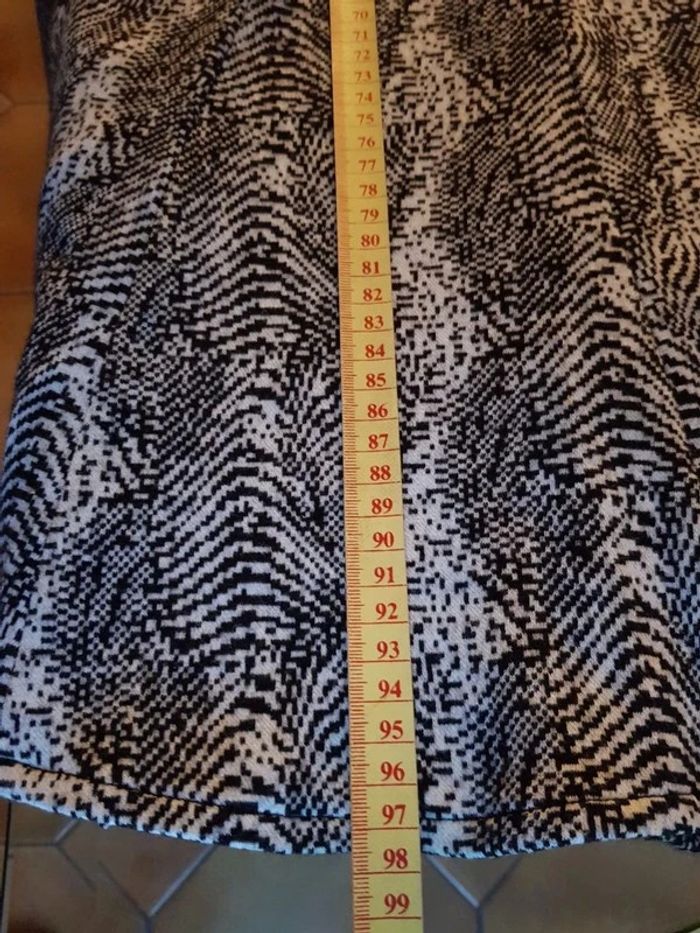 Robe zébrée noir et blanc 46% laine, 42% coton, col en V. Fermeture zippée dans le dos, taille élastiquée. Mesures voir photos - T. 38 - TRÈS BON ÉTAT. #alupinerobejupefemmetaille38 #robefemme38 #robemanchescourtesfemme38 #robecomptoirdescotonniersfemme38 #robemanchescourtesfemmecomptoirdescotonniers38 #comptoirdescotonniersfemme38 #robelainefemme38 #robelainecomptoirdescotonniersfemme38 #comptoirdescotonniers