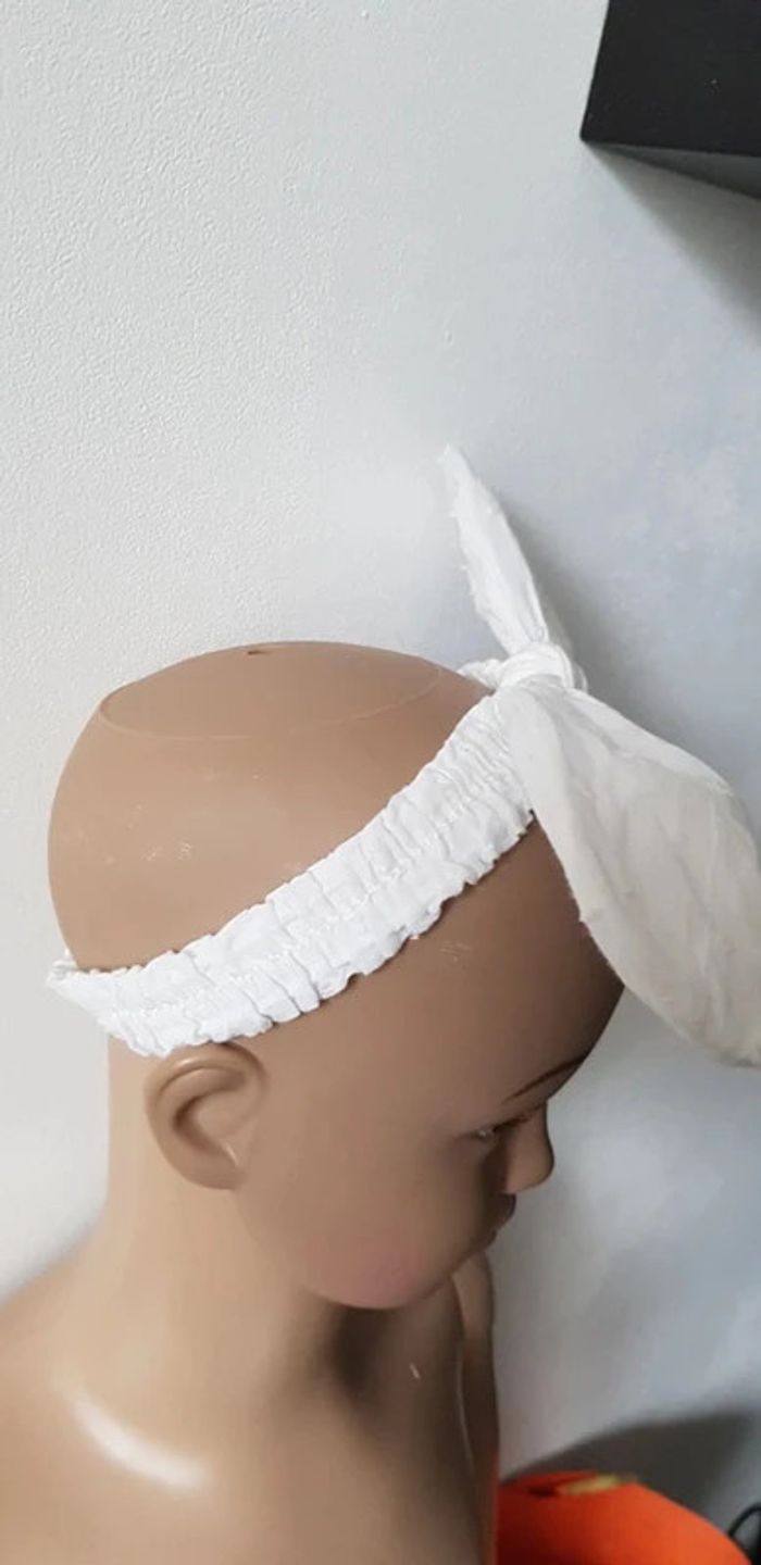 Bandeau élastiqué blanc à petits pois avec grand nœud - T. 2 à 4 mois env. 40 cm - TRÈS BON ÉTAT. #alupineaccessoiresfille #bandeaubebefille #bandeaufille #bandeaubebefille2mois #bandeaufille2mois