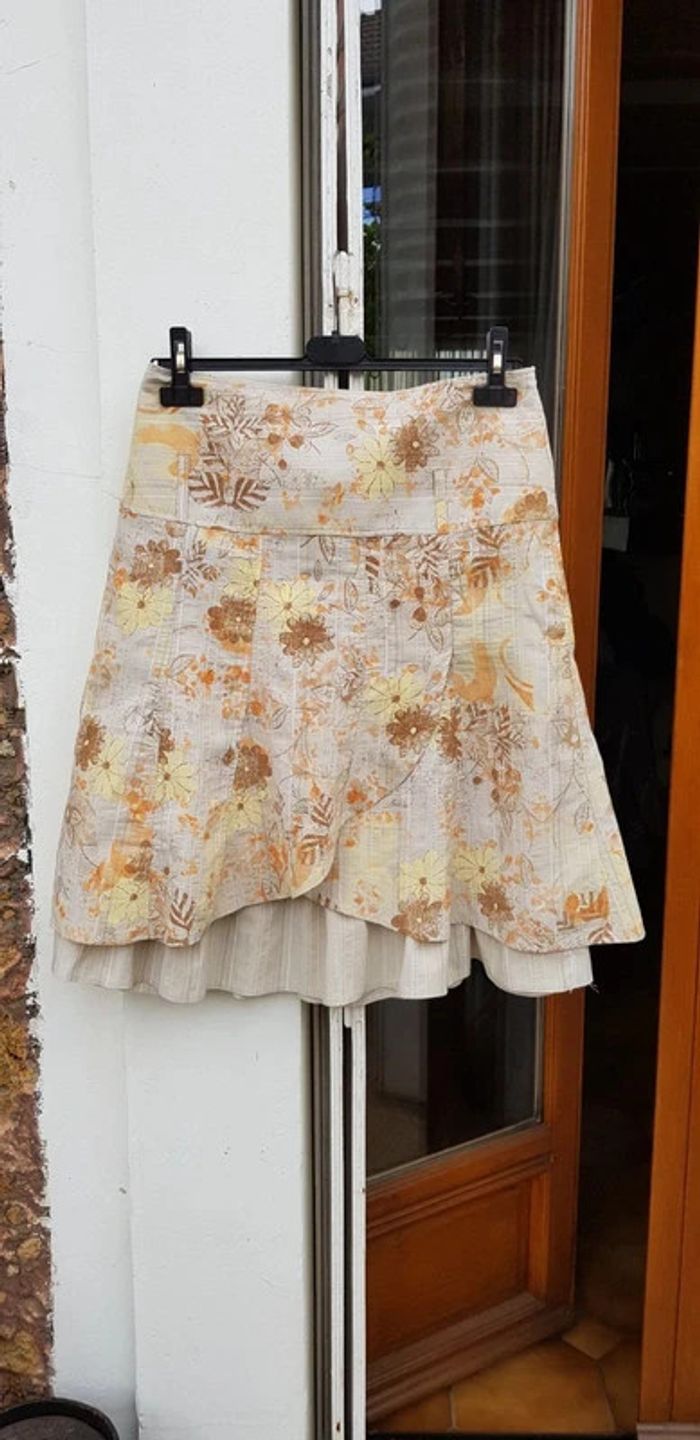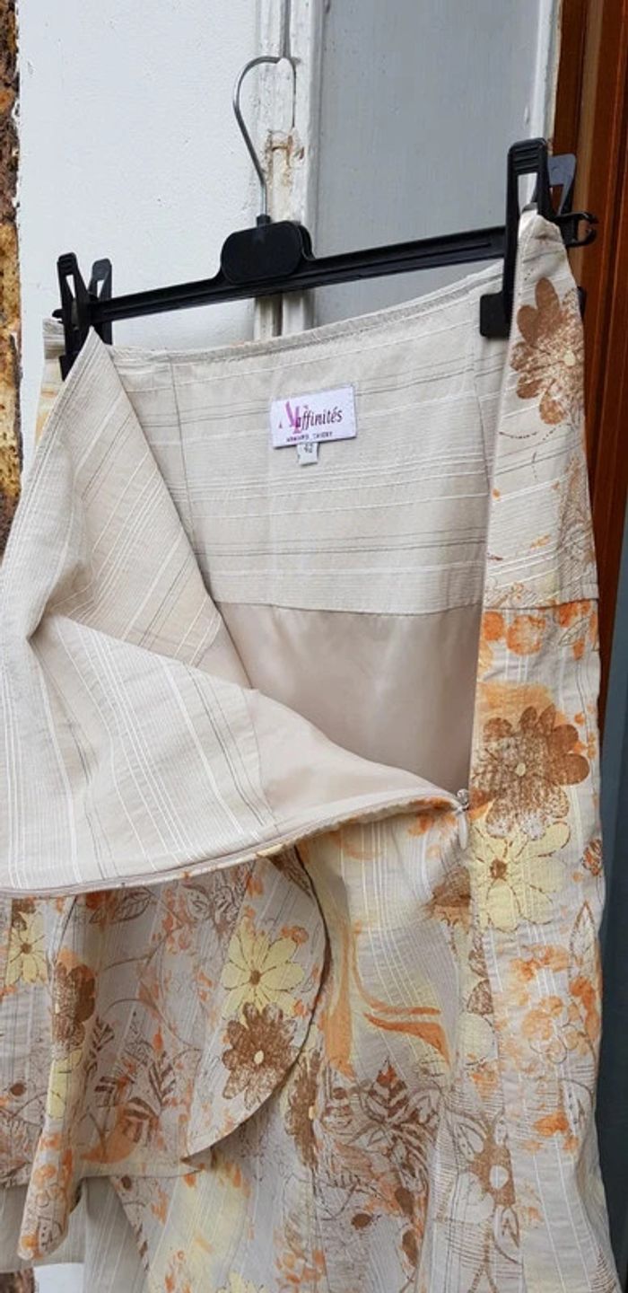 Jolie jupe mi-longue beige style portefeuille avec doublure et zippée sur le côté. Longueur env. 63 cm - T. 40 indiqué T. 42 mais taille petit (env. 80 cm de tour de taille) - NEUVE. #alupinerobejupefemmetaille40 #jupfemme40 #jupemilonguefemme40 #jupearmandthieryfemme40 #jupeportefeuillefemme40 #armandthieryfemme42 #armandthiery