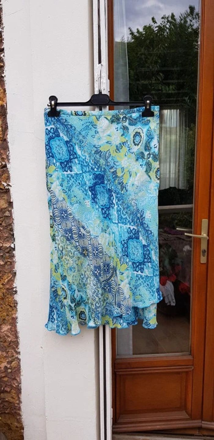 Jupe longue légère multicolore avec 1 couche en superposition, fermeture zippée sur le côté - T. 42 - TRÈS BON ÉTAT juste la couleur de la tirette qui est un peu partie. #alupinerobejupefemmetaille42 #jupefemme42 #jupelonguefemme42 #jupearmandthieryfemme42 #jupelonguearmandthieryfemme42 #armandthieryfemme42 #armandthiery