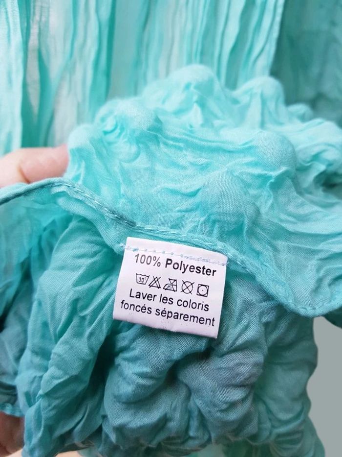 Foulard vert d'eau mesurant env. 1,86 m, finition roulotté - TRÈS BON ÉTAT. #alupinefoulardfemme #alupineaccessoiresfemme #foulard186 #foulardfemme #foulardvertdeau #grandfoulardvert