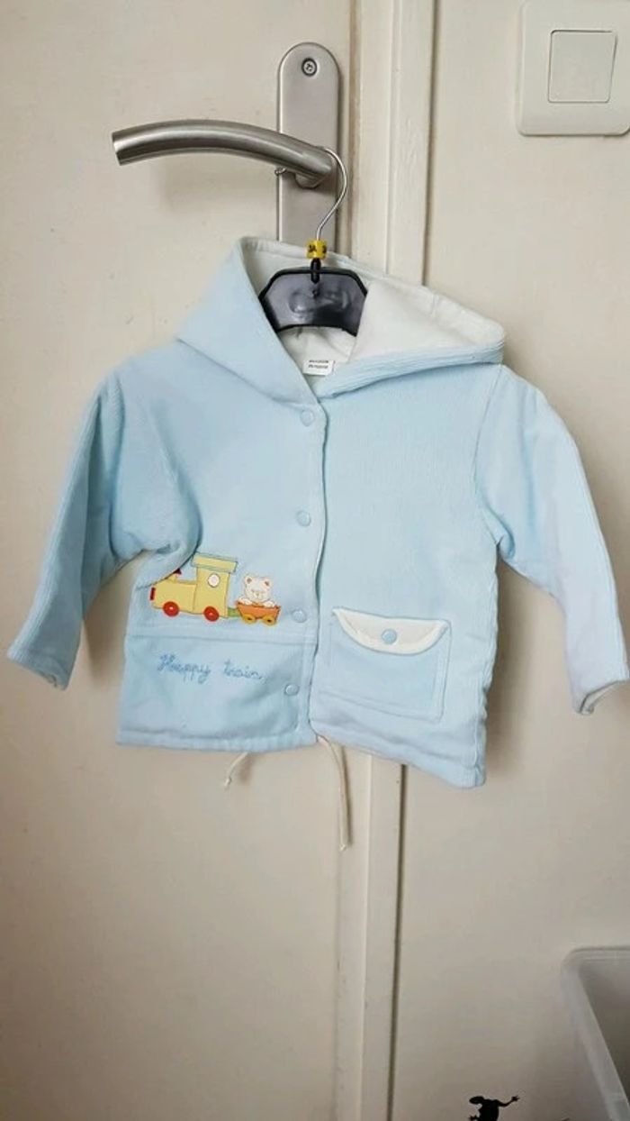 Veste en velours côtelé bleu ciel fermeture boutons pression + cordon pour serrer à la taille - T. 6 mois - NEUVE. #alupinegiletgarcontaille6mois #alupinevestegarcontaille6mois #vestegarcon6mois #vesteveloursgarcon6mois #manteaugarcon6mois #veste6mois #manteaubebe6mois #giletgarcon6mois