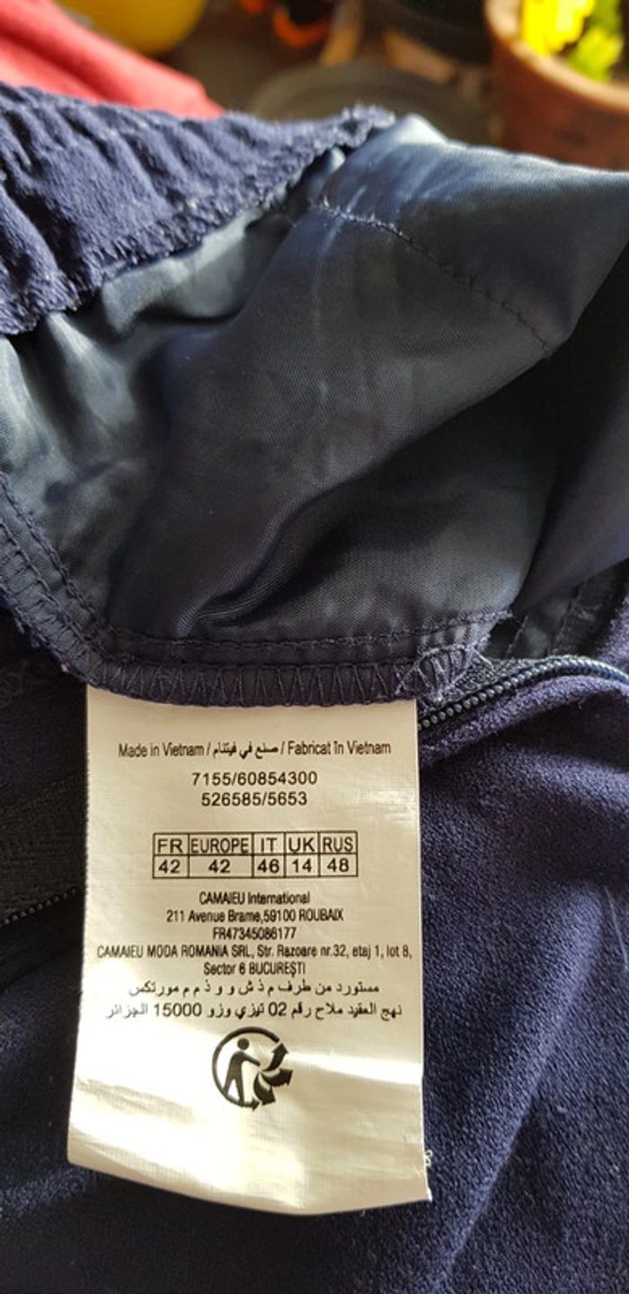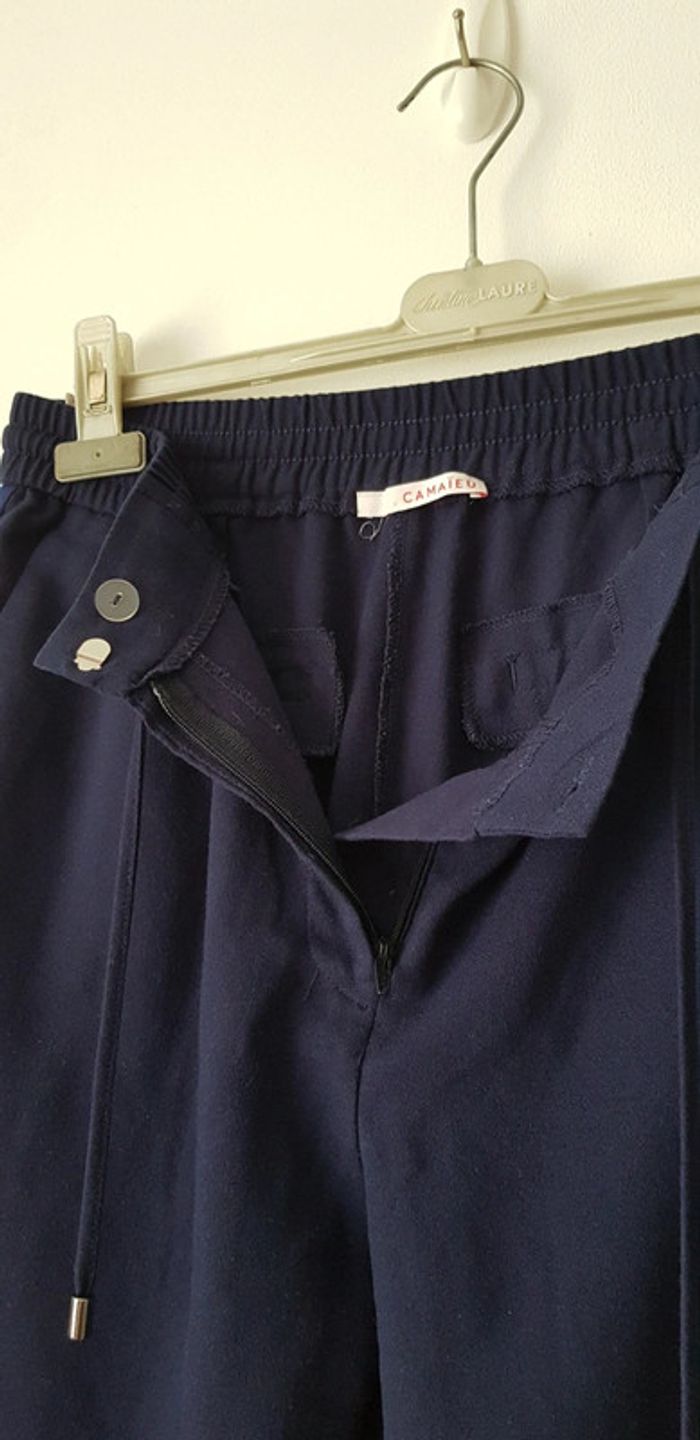Pantalon léger bleu marine style jogging, taille élastiquée avec fermeture zippée, bouton et crochet. Bande sur chaque côté des jambes pour un peu plus de style - T. 42 - TRÈS BON ÉTAT. #alupinepantalonshortfemmetaille42 #pantalonfemme42 #pantalonsouplefemme42 #pantalonlegerfemme42 #pantaloncamaieufemme42 #pantalondecontractefemme42 #camaieufemme42 #camaieu