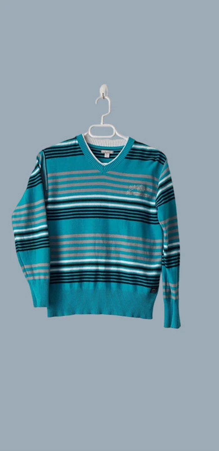 Pull fin en tricot col V à rayures multicolore : noir, turquoise, blanc, gris - T. 12 ans - TRÈS BON ÉTAT. #alupinepullgarcon12ans #pullgarcon12ans #pulllegergarcon12ans #pullfingarcon12ans #pullfinorchestragarcon12ans #pullcolvgarcon12ans #pulllegercolvgarcon12ans #pullcolvorchestragarcon12ans #pullcolvlegerorchestragarcon12ans #pullorchestragarcon12ans #pulllegerorchestragarcon12ans #orchestragarcon12ans #orchestra