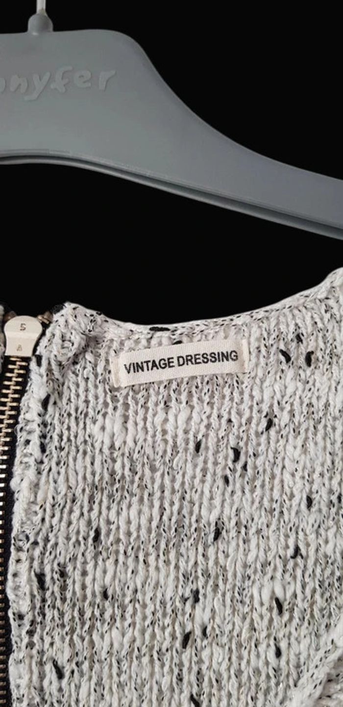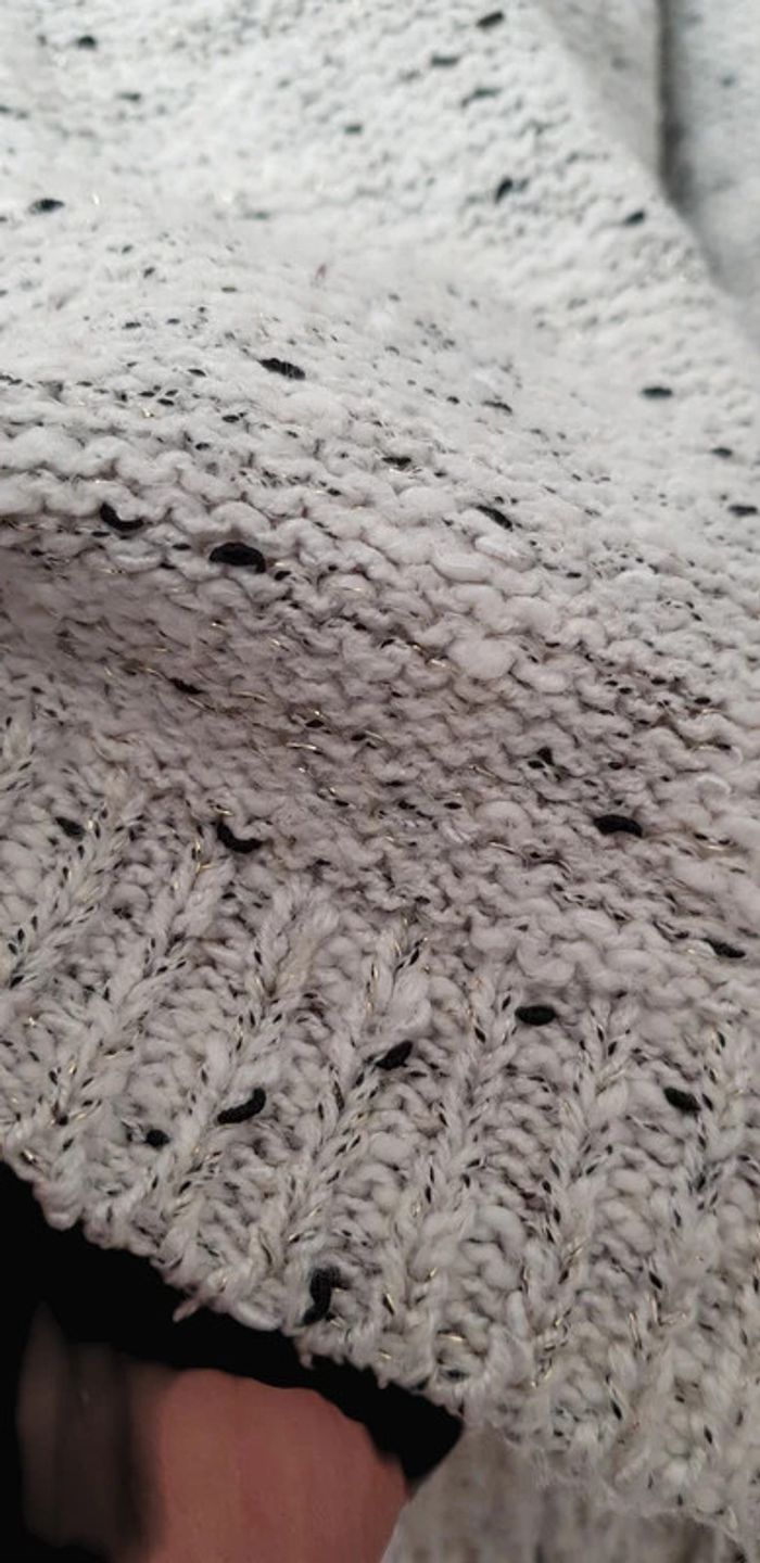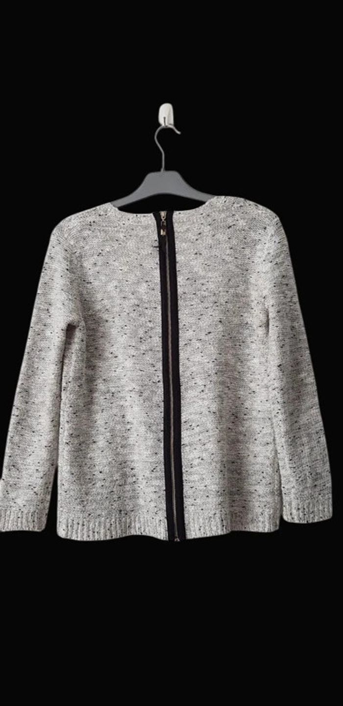 Pull col V en maille blanc, noire, gris, fil doré...fermeture zippée sur la longueur du dos - T. 40 - TRÈS BON ÉTAT. #alupinepullfemme40 #pullfemme40 #pullcolvfemme40 #pullenmaillefemme40 #pullvintagedressingfemme40 #pullcolvvintagedressingfemme40 #vintagedressingfemme40 #vintagedressing