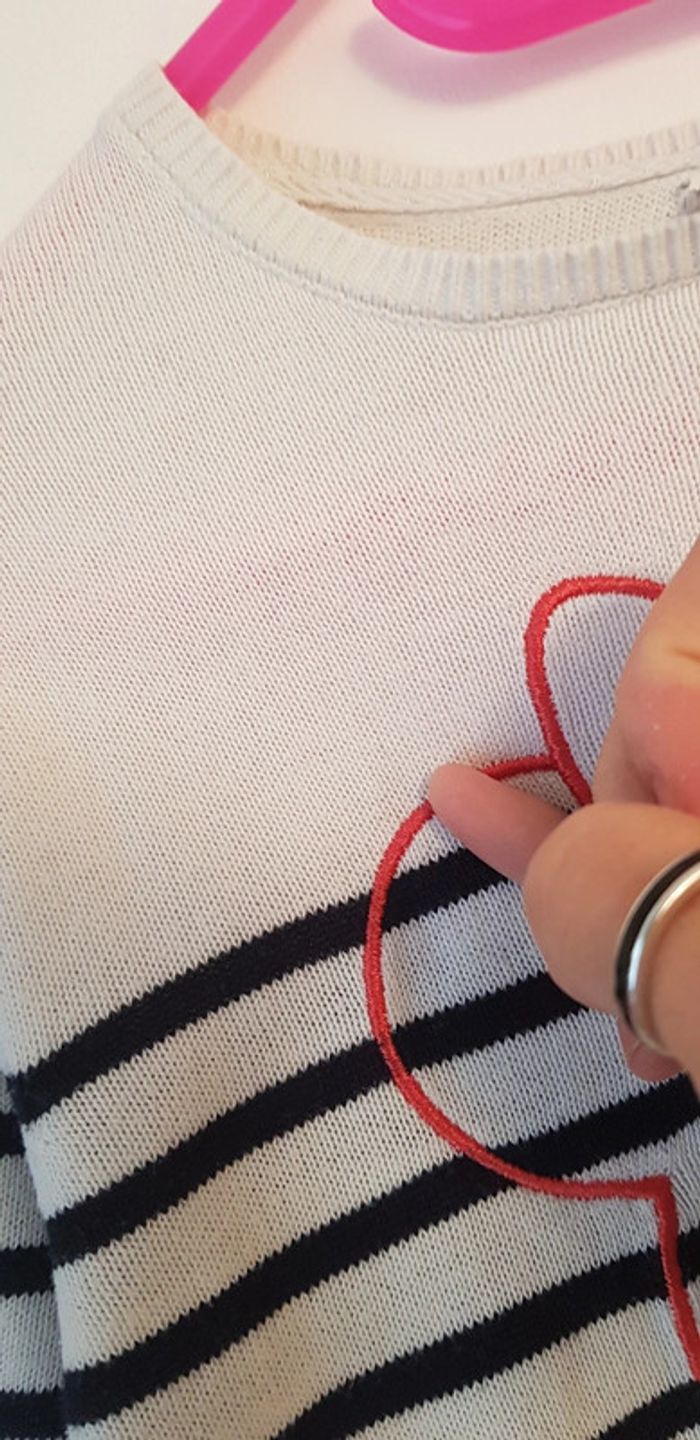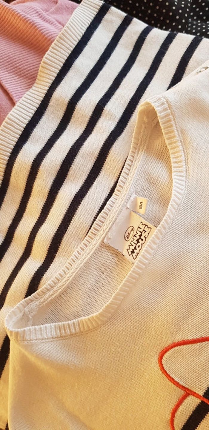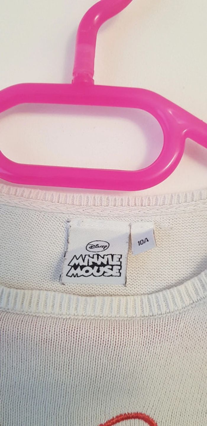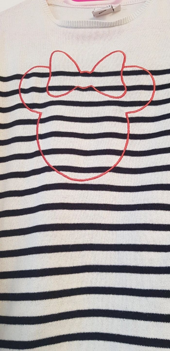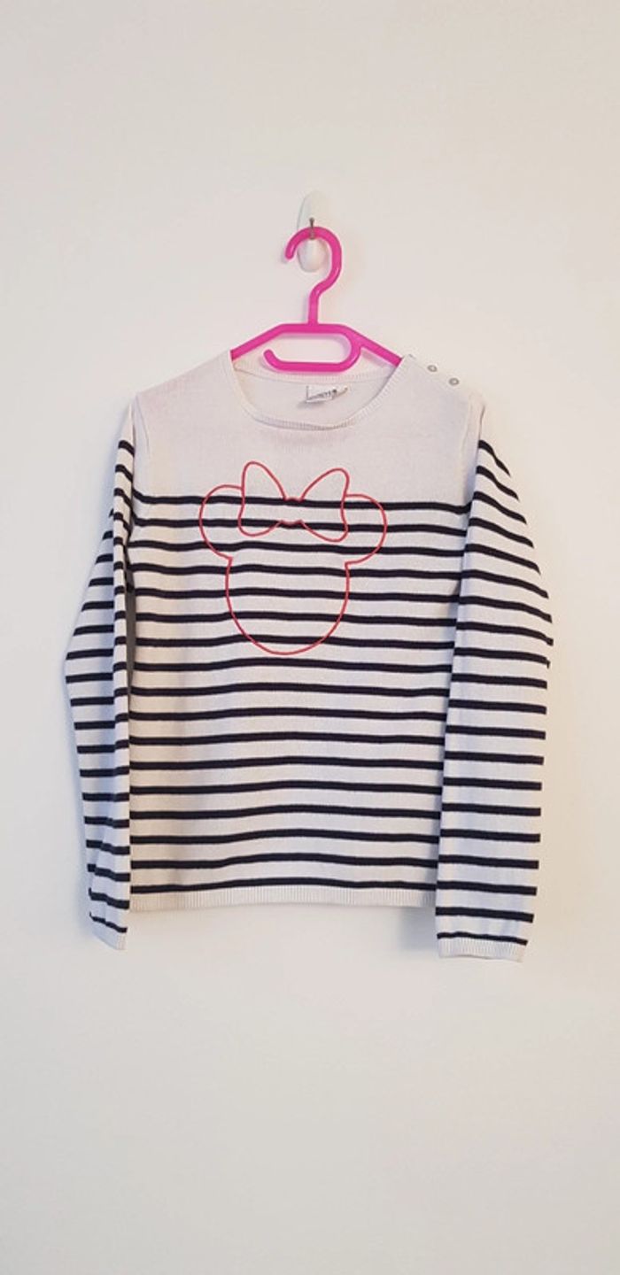 Pull fin style marinière blanc et bleu marine avec Minnie brodée, ouverture boutons sur l'épaule - T. 10 ans - Il y a quelques tâches voir photos, col est un peu lâche mais sinon reste correct dans l'ensemble. #alupinepullfille10ans #pullfille10ans #pullfinfille10ans #pullminniefille10ans #pullmarinierefille10ans #pulldisneyfille10ans #minniefille10ans #disneyfille10ans #disney