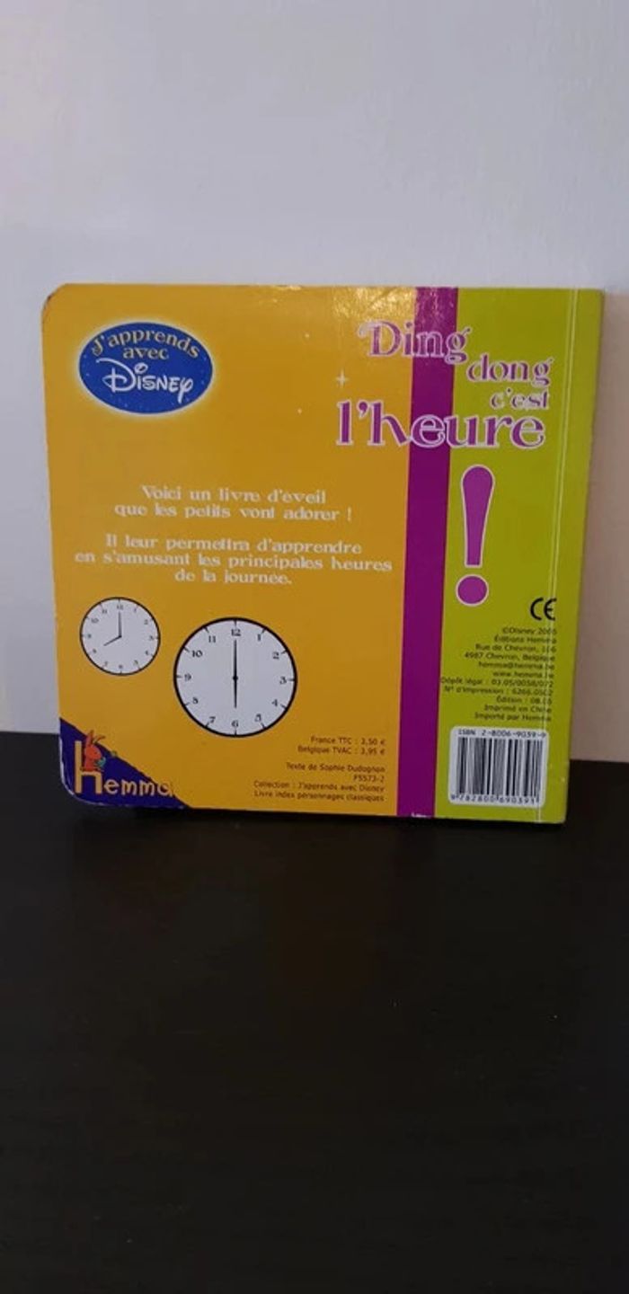 Livre d'éveil pour apprendre les principales heures de la journée avec quelques personnages de Disney - Marques d'usures en extérieur mais reste en TRÈS BON ÉTAT dans l'ensemble. #alupinelivreenfant #livredeveilenfant #livreenfant #livreapprendrelheure #livredisney #disney #livredingdongcestlheure #dingdongcestlheure