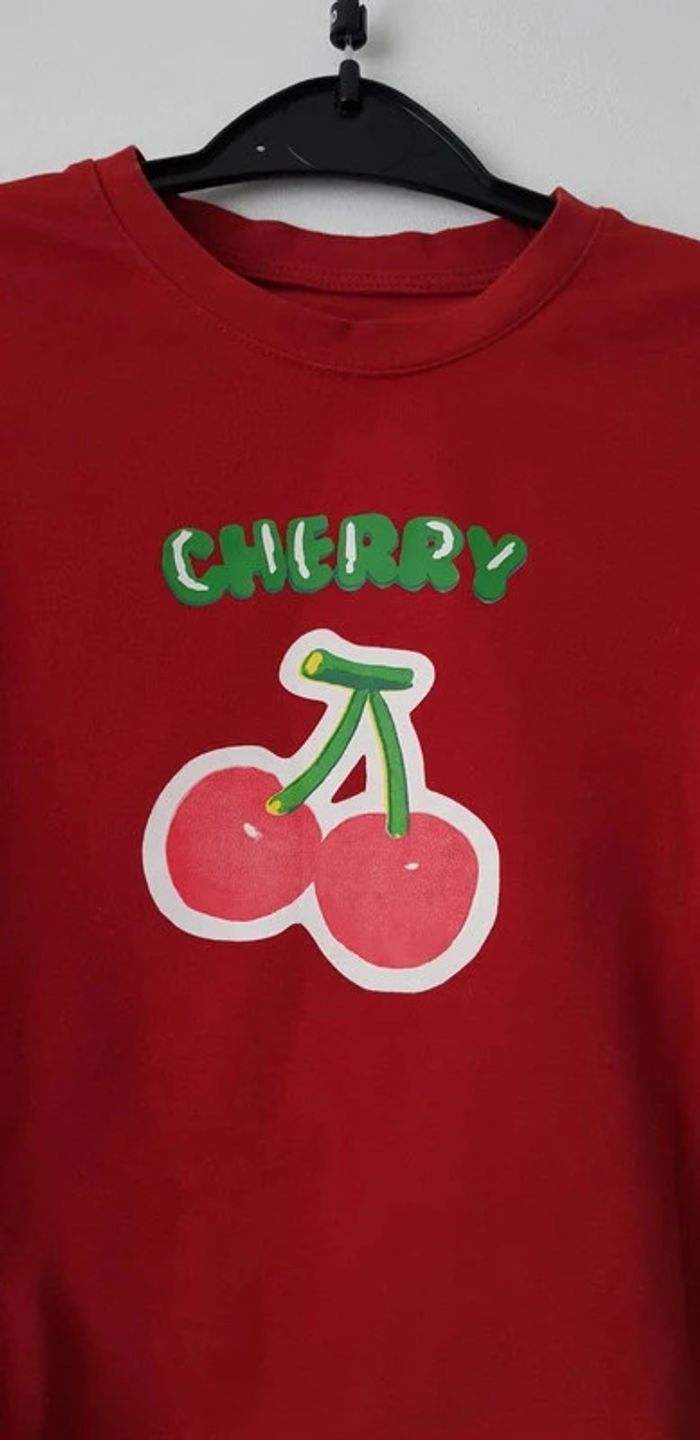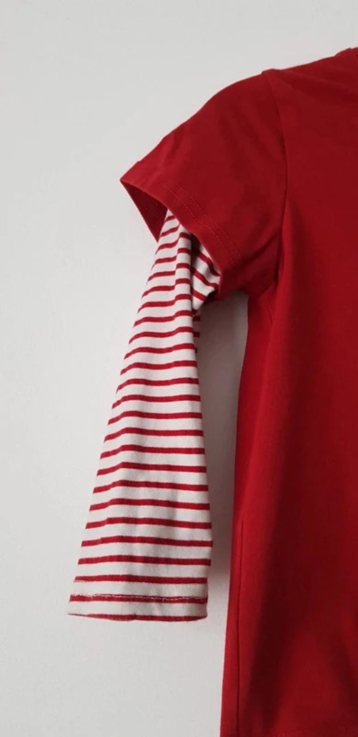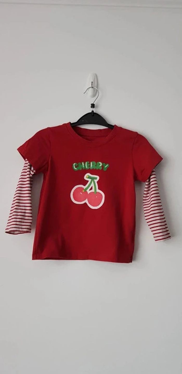 Tee-shirt effet 2 en 1, manches courtes bordeaux avec flocage cerises en très bon état avec manches longues à rayures blanches et bordeaux - T. 4 ans - TRÈS BON ÉTAT. #alupineteeshirtfilletaille4ans #teeshirtfille4ans #teeshirtmancheslonguesfille4ans #teeshirtikgirlfille4ans #ikgirlsfille4ans #ikgirls