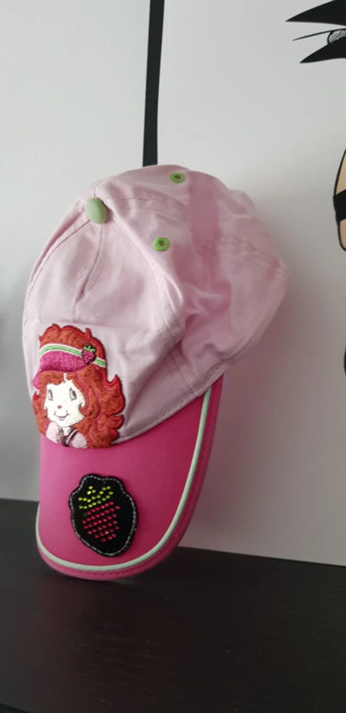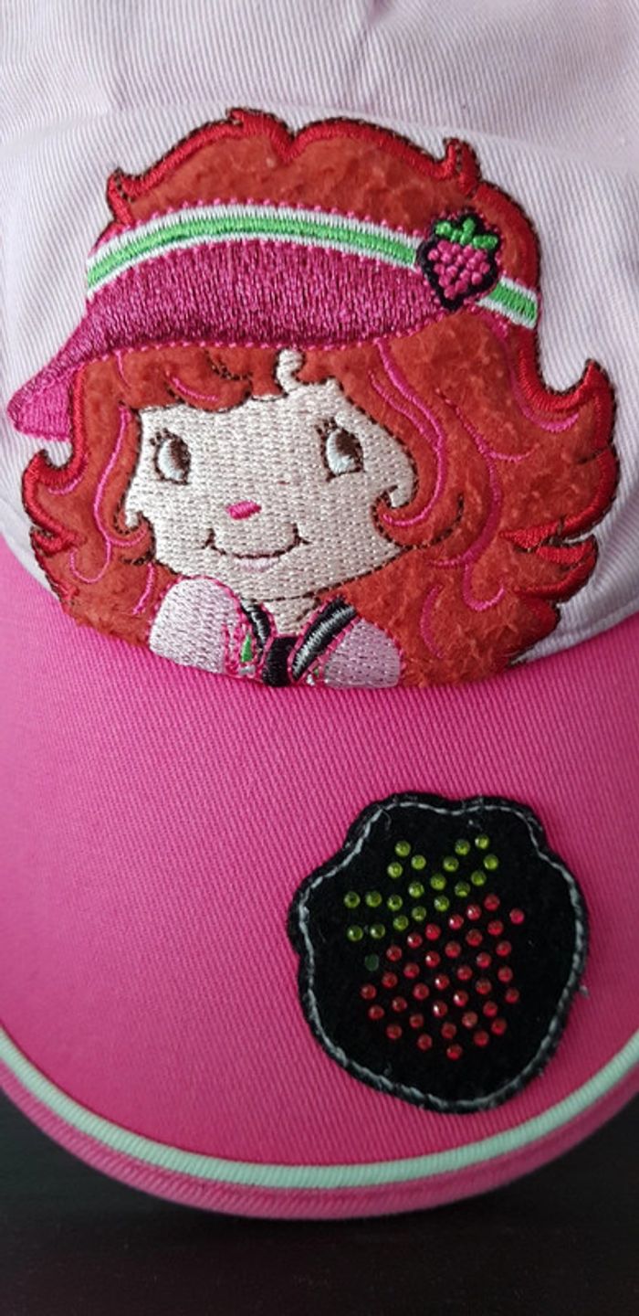 Casquette 🍓 Charlotte aux fraises 🍓 avec scratch, petite fraise en strass sur la visière (il en manque 1) - T. 52 cm = 2 / 3 ans - TRÈS BON ÉTAT. #alupineaccessoiresfille #casquettefille52cm #casquettefille2ans3ans #casquettefille2ans #casquettecharlotteauxfraises52 #casquettecharlotteauxfraises2ans #charlotteauxfraisesfille2ans #charlotteauxfraises
